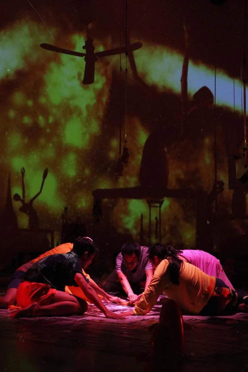 วิชย – ก่อนหน้านี้เวลาเราไปแสดงในพื้นที่บางแห่งที่กรุงเทพฯ เราจะสำรวจความเป็นไปได้ต่างๆ ของพื้นที่นั้นๆ ซึ่งพื้นที่นั้นไม่ได้เป็นไปตามมาตรฐานขนาดนั้น คืออาจไม่ได้เป็นพื้นที่ที่สร้างขึ้นมาสำหรับการแสดงละครเวที เลยทำให้เรามีวิธีคิดหาทางในการทำละครเพื่อรองรับ เล่นกับพื้นที่ซึ่งอาจจะไม่ได้สร้างมาเพื่อให้เล่นละครเวทีอย่างเดียว