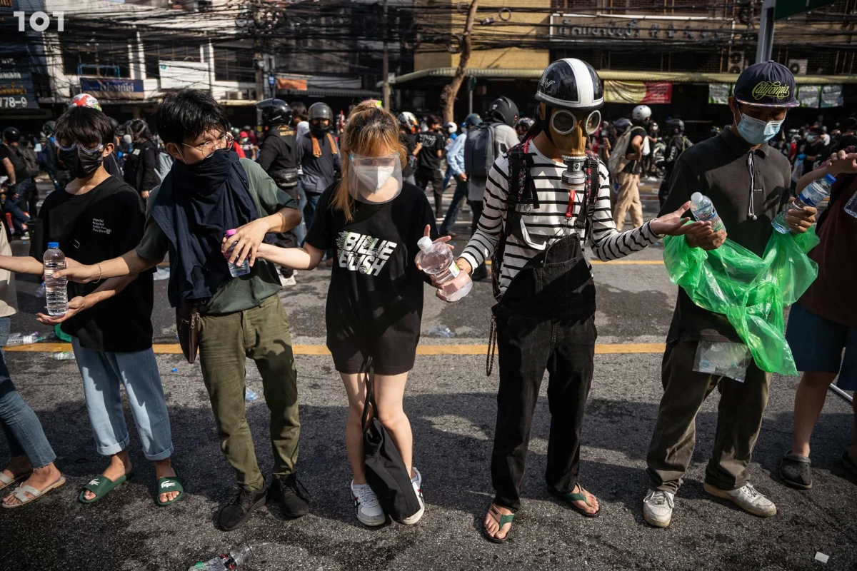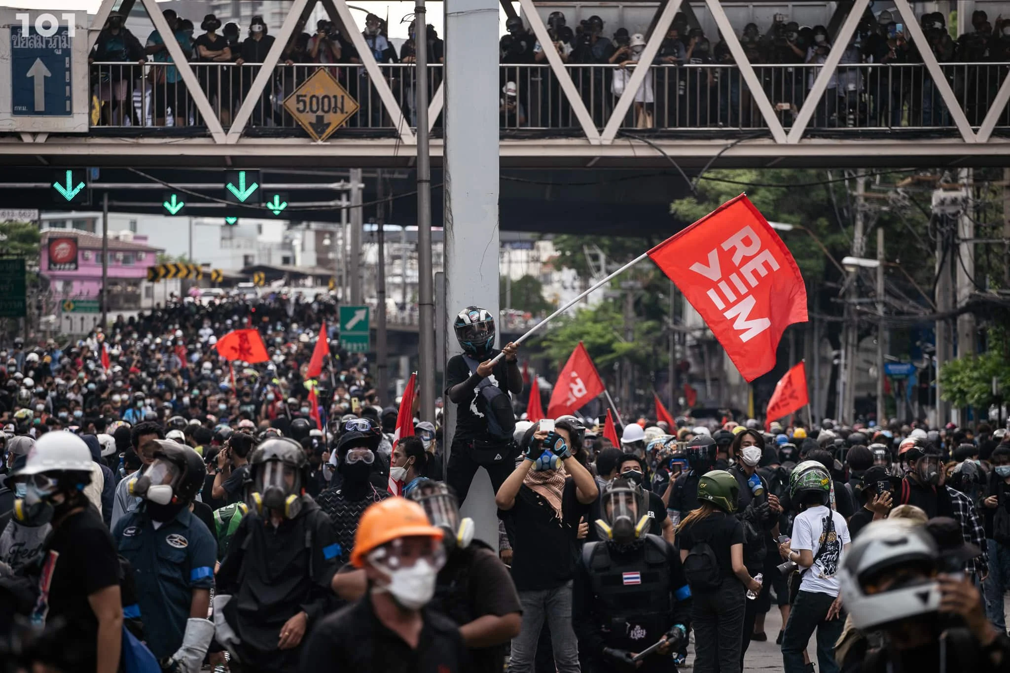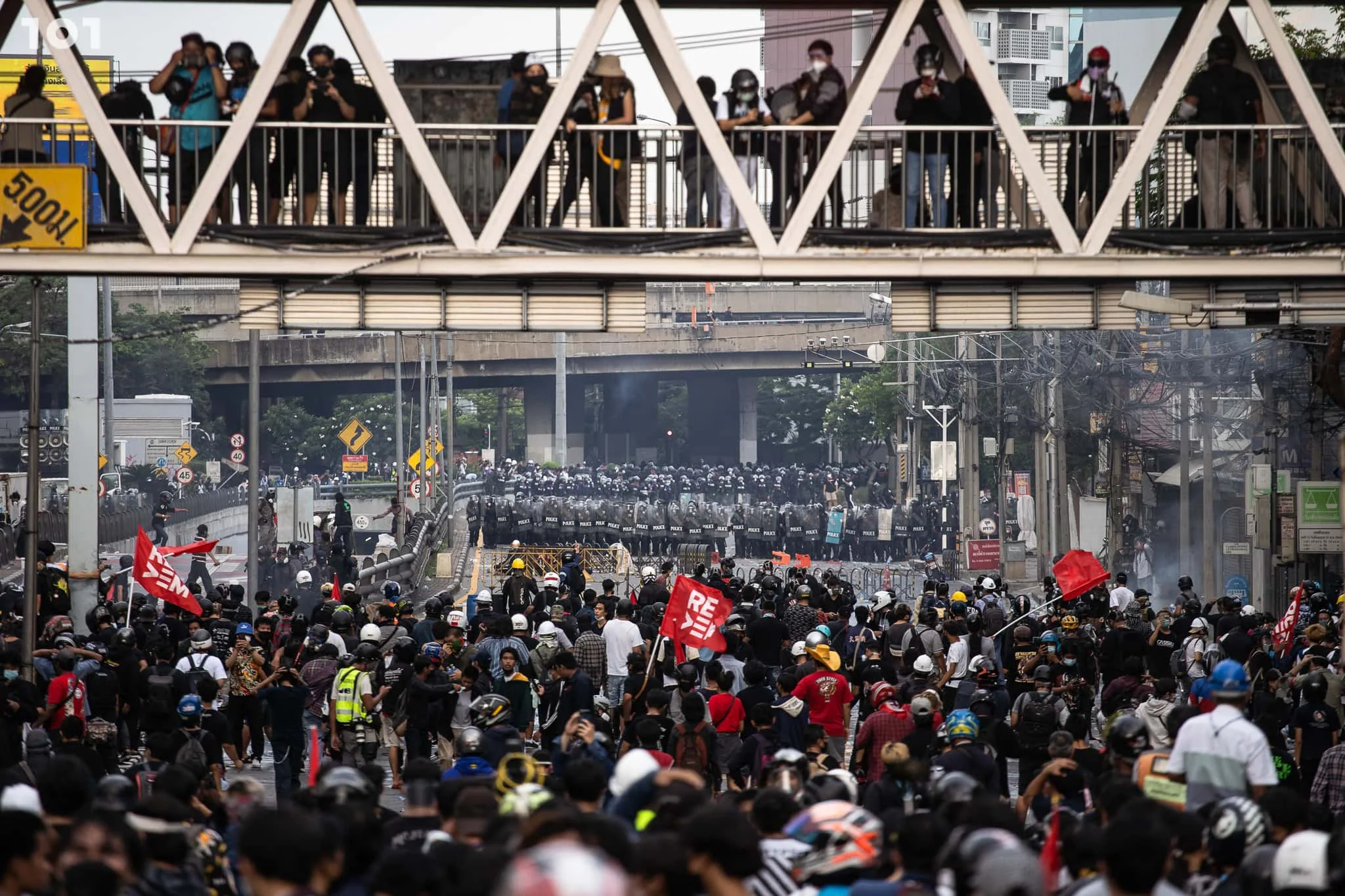 เวลา 16.30 น. บริเวณแยกดินแดงมีการปะทะกันระหว่างเจ้าหน้าที่ตำรวจกับกลุ่มผู้ชุมนุมแนวหน้าโดยเจ้าหน้าที่ตำรวจยิงแก๊สน้ำตาและกระสุนยางอย่างต่อเนื่องเพื่อสกัดขบวนของผู้ชุมนุม ทางด้านแกนนำประกาศให้กลุ่มผู้ชุมนุมถอยเพราะเกรงว่าอาจจะเกิดอันตรายต่อผู้ชุมนุม