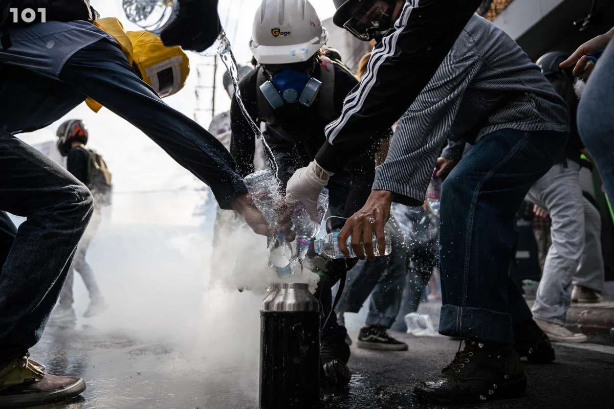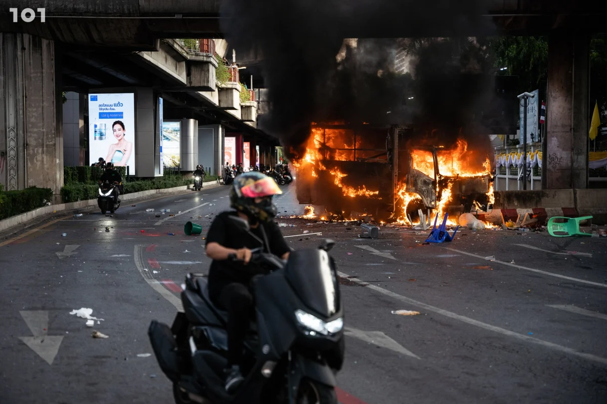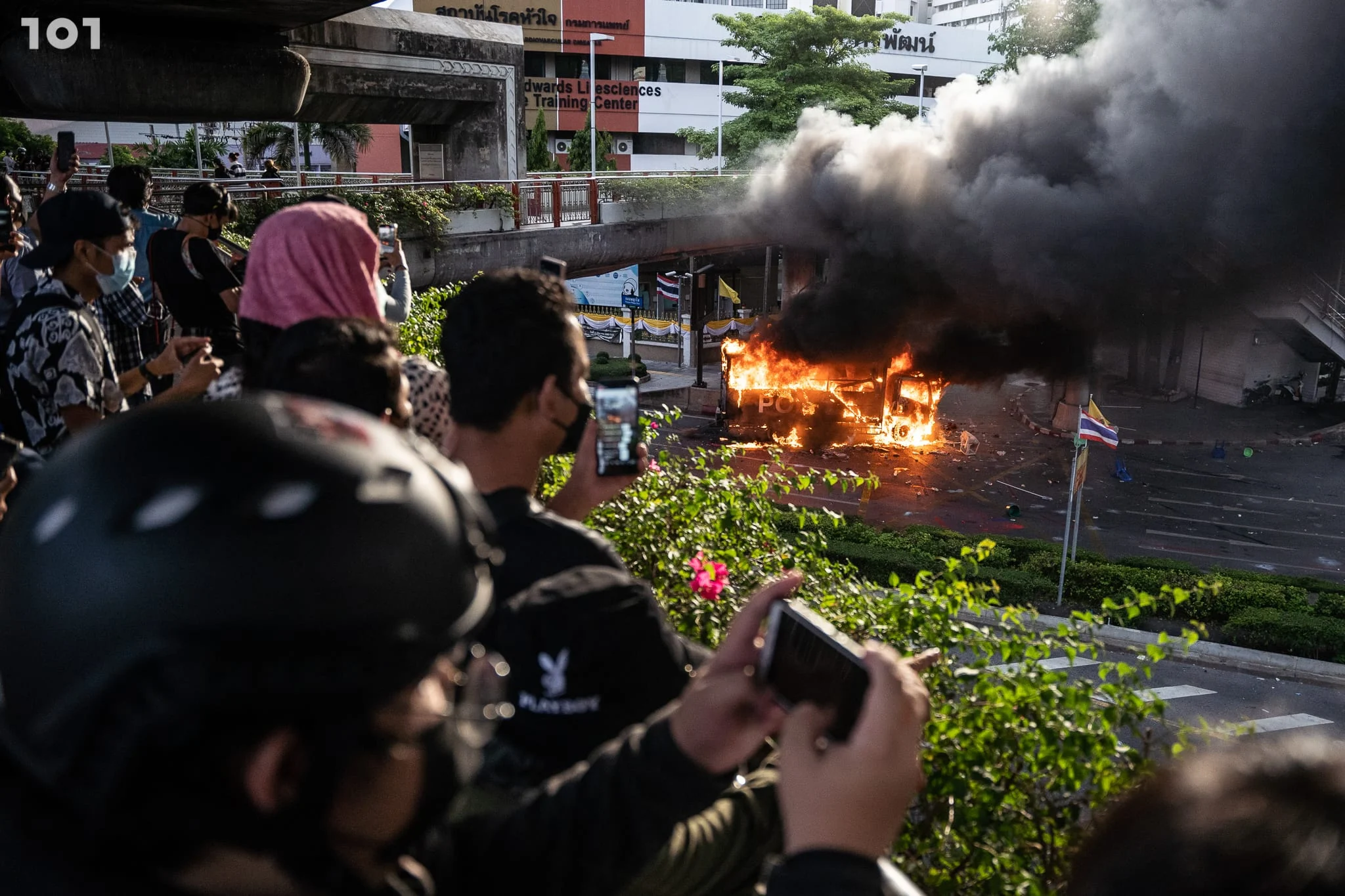 เวลา 16.30 น. บริเวณแยกดินแดงมีการปะทะกันระหว่างเจ้าหน้าที่ตำรวจกับกลุ่มผู้ชุมนุมแนวหน้าโดยเจ้าหน้าที่ตำรวจยิงแก๊สน้ำตาและกระสุนยางอย่างต่อเนื่องเพื่อสกัดขบวนของผู้ชุมนุม ทางด้านแกนนำประกาศให้กลุ่มผู้ชุมนุมถอยเพราะเกรงว่าอาจจะเกิดอันตรายต่อผู้ชุมนุม