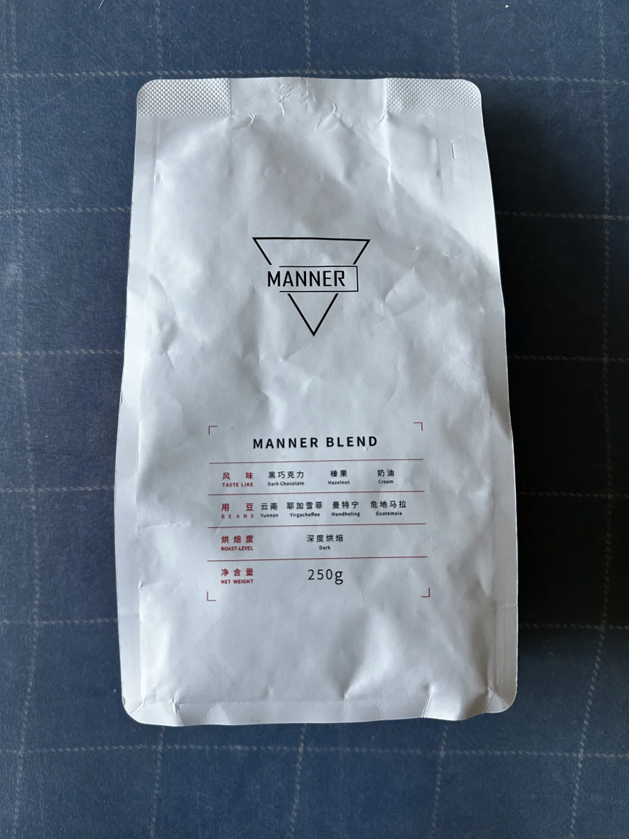 ถุงนี้ผมได้มาจากเซี่ยงไฮ้ บ้านเกิดของ Manner คั่วมาในระดับค่อนข้างเข้ม จุดเด่นคือใช้เมล็ดกาแฟจากแหล่งปลูกในยุนนาน มาเบลนด์รวมกับเมล็ดกาแฟจากเยอร์กาเซฟฟี ประเทศเอธิโอเปียและจากกัวเตมาลา ถุงนี้เหมาะสำรับการชงแบบเครื่องเอสเพรสโซ หรือ French Press หอมคาราเมลและกลิ่นถั่วอัลมอนด์ดีเชียว
