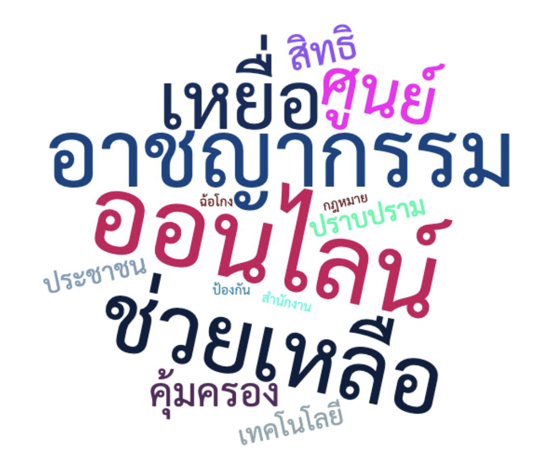 เพจน่าสงสัยเหล่านี้นิยมใช้ชุดคำประเภท ‘ช่วยเหลือ’ ‘อาชญากรรม’ และ ‘ออนไลน์’ ซึ่งเป็นชุดคำที่มีแนวโน้มว่าจะถูกค้นหาโดยเหยื่ออาชญากรรมออนไลน์ที่ต้องการความช่วยเหลือ ส่วนชุดคำประเภท ‘ศูนย์’ ‘คุ้มครอง’ ‘สำนักงาน’ ‘ปราบปราม’ ก็ดูจะเป็นชุดคำที่มักใช้เพื่อสร้างความน่าเชื่อถือและหลอกให้เข้าใจผิดว่าเป็นหน่วยงานรัฐ