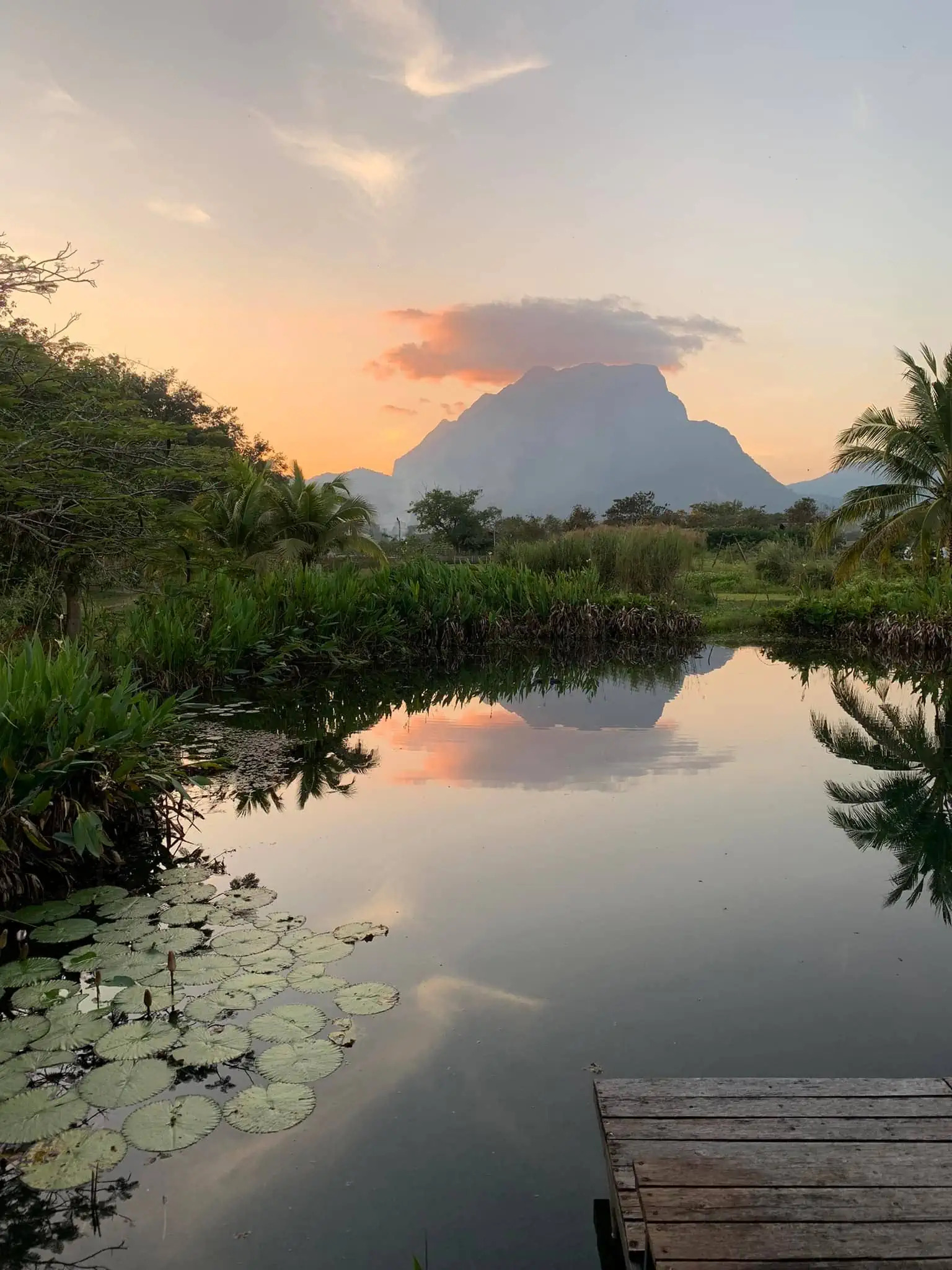 แดดยามบ่ายลอดผ่านหมู่ไม้ กระทบยอดหญ้าและผิวน้ำในบึงน้อย ทำเอาทุกอย่างส่องสว่างอย่างกับทองคำ เบื้องหลังคือดอยหลวงเชียงดาวสูงตระหง่านราววิหารศักดิ์สิทธิ์ ยามค่ำแสงดาวกระพริบกลางฟ้ามืด ความเย็นเยือกต้นฤดูหนาวแทรกผ่านมวลอากาศจนทุกอย่างหยุดนิ่ง ความงามรายล้อมอยู่รอบตัวทั้งที่มองเห็นได้ด้วยตาและสัมผัสได้ด้วยใจ
