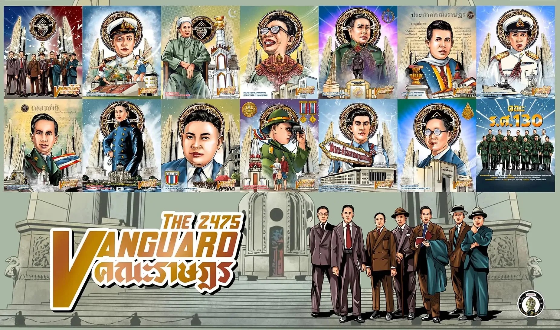 ปีก่อนเมื่อครั้งจัดสร้างปฏิทินป๋วย พ.ศ. 2565[22] นับเป็นวาระรำลึก 90 ปีแห่งการเปลี่ยนแปลงการปกครอง และ 110 ปีของปฏิวัติ ร.ศ. 130 ผู้เขียนได้รับเกียรติเชื้อเชิญให้เข้าร่วมรังสรรค์ปฏิทินในฐานะบรรณาธิการ จึงได้เลือกเฟ้น 12 สมาชิกคณะราษฎรนำเสนอในรูปแบบของ ‘การ์ตูนอเมริกัน’ (American Comic) ผ่านฝีมือของศิลปินนักวาดภาพมือฉมัง เฉลิมพล จั่นระยับ[23] อีกทั้งอาจารย์สุลักษณ์ ศิวรักษ์ ยังให้เกียรติร่วมกับบรรณาธิการบอกเล่าเรื่องราวของบุคคลทั้ง 12 ท่านนี้ ผ่านคลิปใน youtube รวมถึงเข้าร่วมในงานเปิดตัวปฏิทินที่ตั้งชื่อตามคำนิยามภาษาอังกฤษของปรีดี พนมยงค์ ข้างต้นไว้ว่า “The 2475 Vanguard