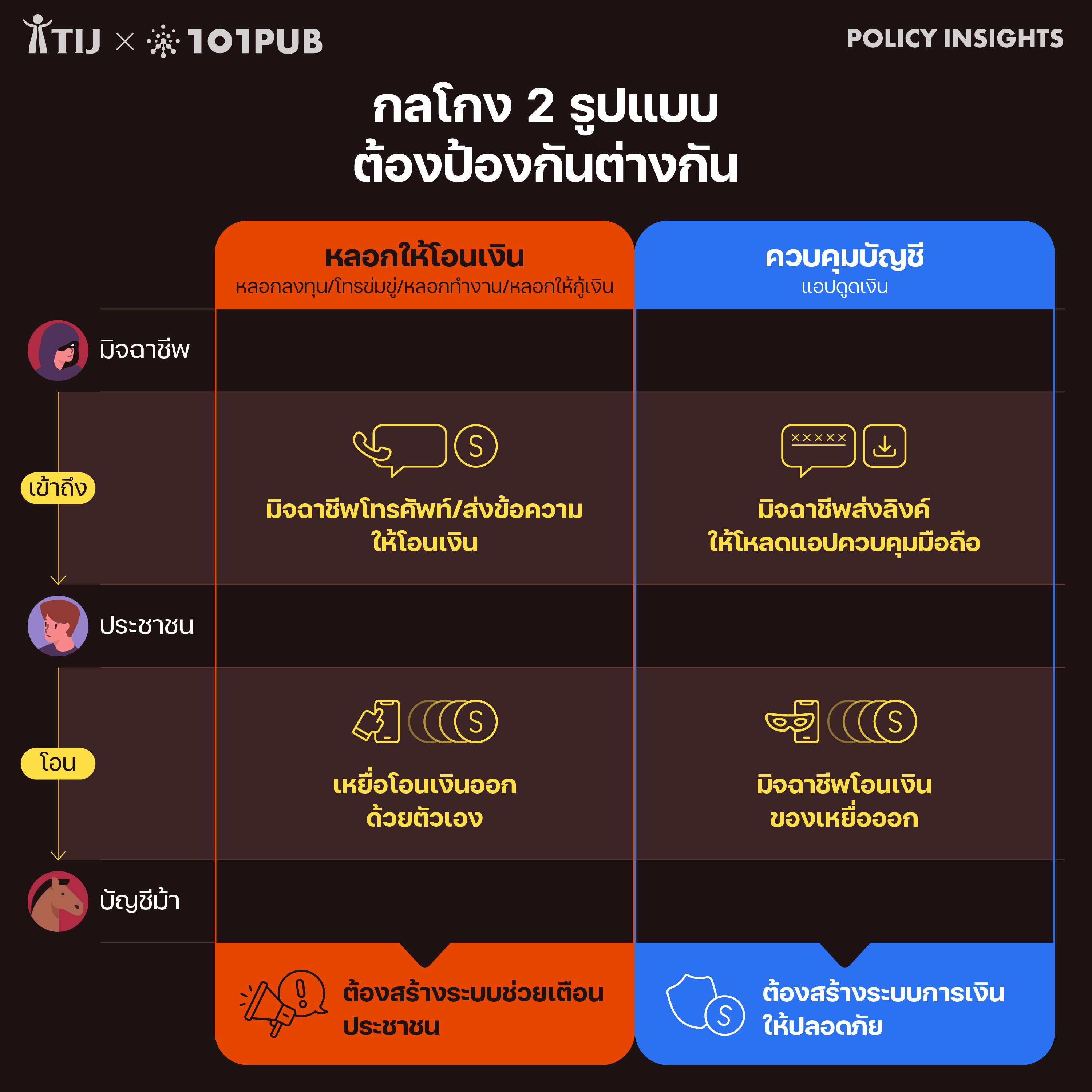 บทความนี้เริ่มต้นจากการอธิบายให้เห็นวิธีการหลอกลวงของมิจฉาชีพ ตามมาด้วยการพูดถึงแนวทางการจัดการของรัฐไทย และสุดท้ายจะพาไปสำรวจแนวทางที่หลายประเทศใช้เพื่อยกระดับการป้องกันการหลอกลวงออนไลน์