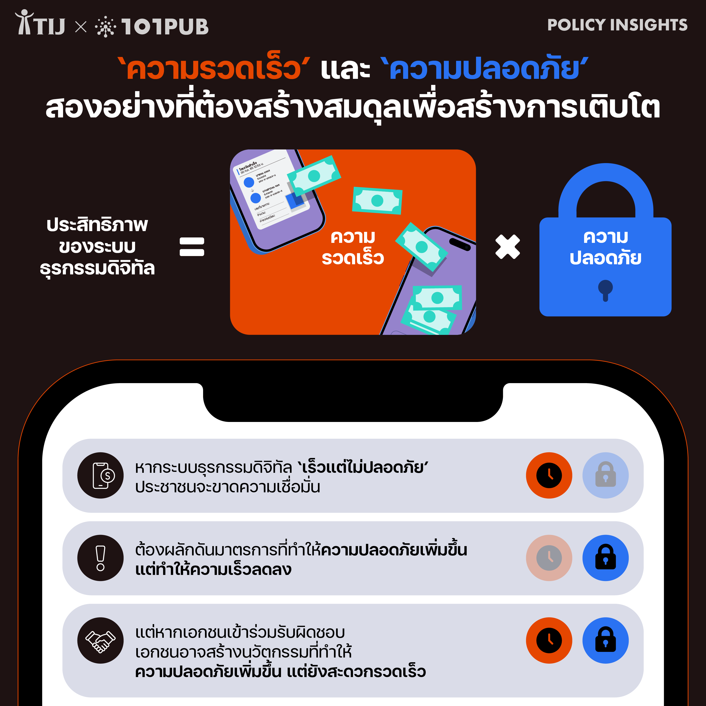 หากต้องการทำให้ประชาชนกลับมาเชื่อมั่น กล้าใช้บริการในระบบดิจิทัล ก็ต้องทำให้บริการในระบบดิจิทัลปลอดภัยจากมิจฉาชีพ อย่างไรก็ตาม หลายมาตรการที่ถูกออกแบบมาเพื่อป้องกันการหลอกลวงออนไลน์นั้นส่งผลให้ความรวดเร็วของบริการนั้นลดลง เช่น มาตรการลงทะเบียนเพื่อส่ง SMS หรือยิงโฆษณาสร้างความยุ่งยากให้กับธุรกิจที่ต้องการสื่อสารกับเป้าหมายในวงกว้าง มาตรการเพิ่มขั้นตอนก่อนโอนเงินและมาตรการหน่วงเงิน[45] ส่งผลให้การทำธุรกรรมออนไลน์นั้นช้าลง[46]