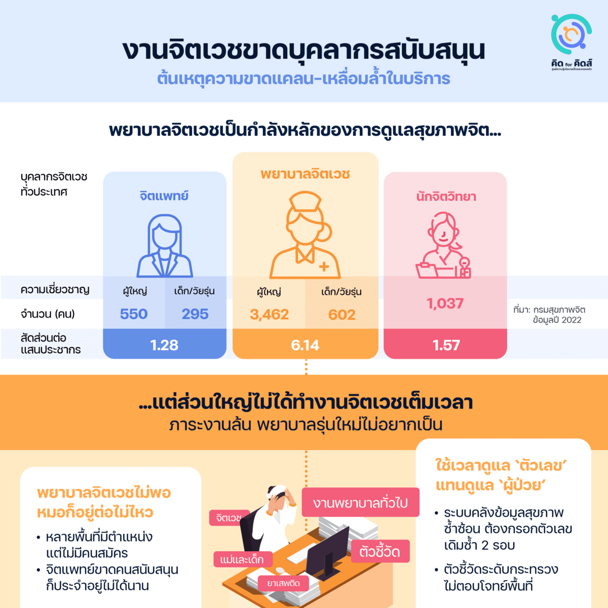 - อ่านเพิ่มเติมเกี่ยวกับปัญหาจิตแพทย์เด็กและวัยรุ่นขาดแคลนใน สุขภาพใจที่อยู่ไกลเกินเอื้อมของเด็กและวัยรุ่นไทย