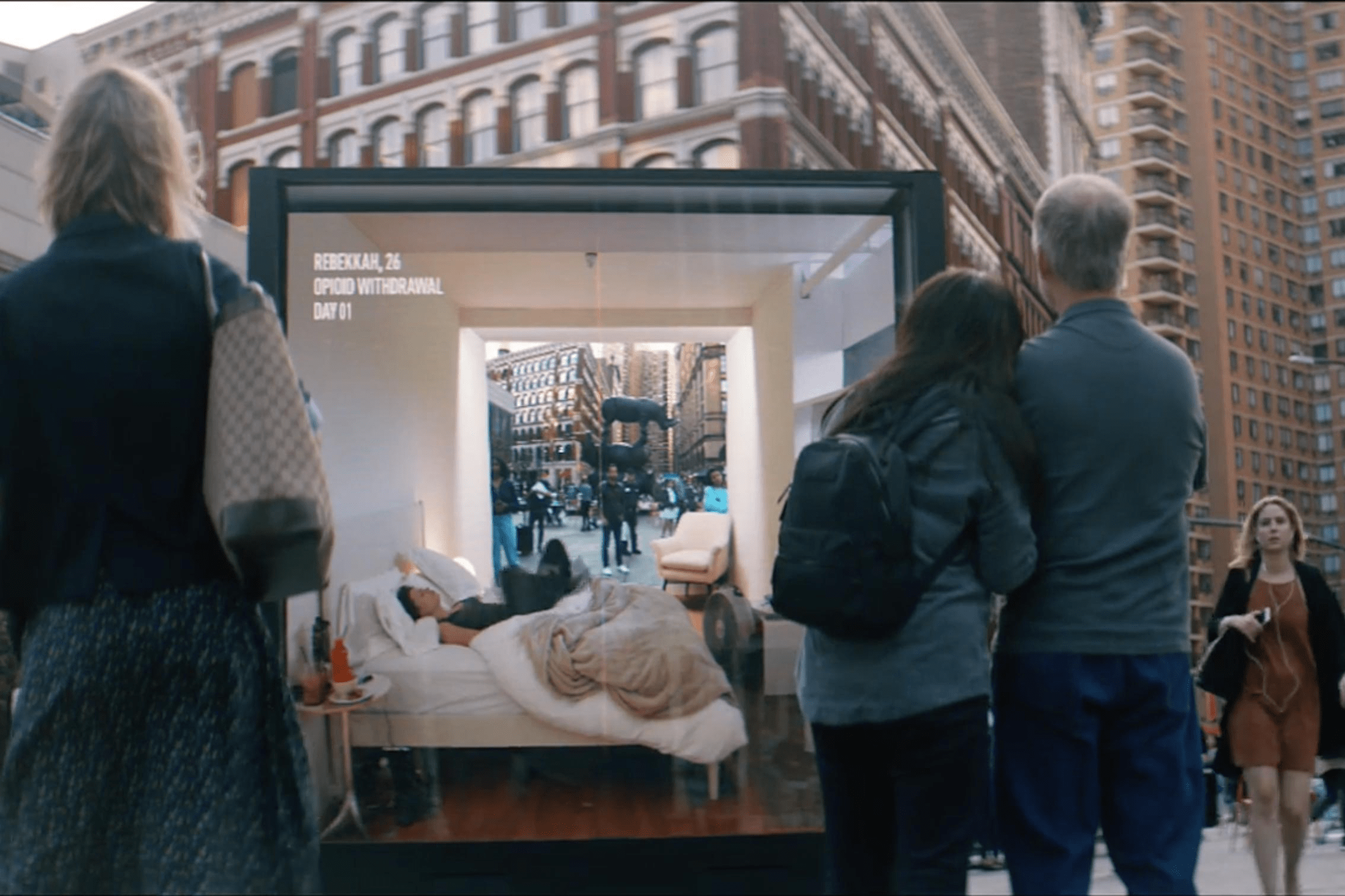 Treatment Box คือ Installation Art ทรงลูกบาศก์ ตั้งอยู่กลางจตุรัส Aster Place ในนิวยอร์ค ทั้งสี่ด้านคือจอที่ฉายภาพวิดีโอจริงจากห้องบำบัดยาเสพติดของ Rebekkah – วัยรุ่นสาวที่เคยเสพติดเฮโรอีน ทางองค์กรทำข้อตกลงขออนุญาตถ่ายทำกระบวนการบำบัดยาระยะเริ่มต้นของเธอ ตลอด 5 วัน แบบเรียลไทม์ และนำภาพทั้งหมดออกมามอบเป็นวิทยาทานให้กับคนอื่นผ่าน Treatment Box นี้ กระบวนการทั้งหมดอยู่ภายใต้การดูแลของแพทย์และจิตแพทย์