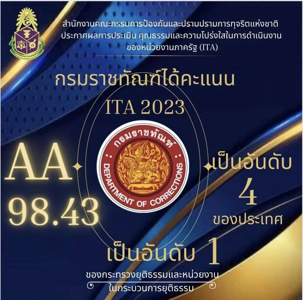 “กรมราชทัณฑ์ได้คะแนนคุณธรรมและความโปร่งใสระดับ AA เป็นอันดับที่ 4 ของประเทศ”