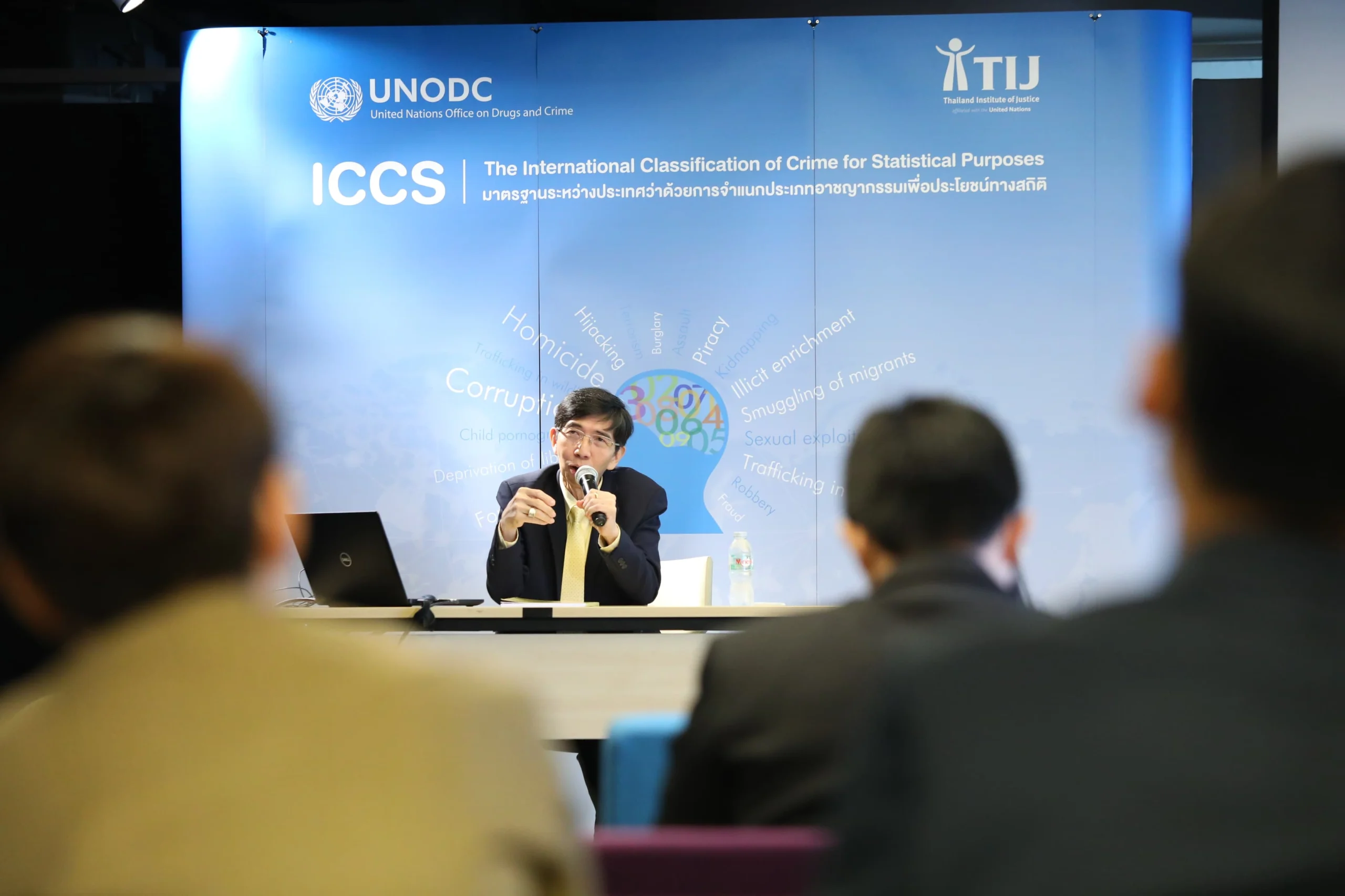 ศาสตราจารย์พิเศษ ดร.กิตติพงษ์ กิตยารักษ์ ผู้อำนวยการสถาบันเพื่อการยุติธรรมแห่งประเทศไทย (TIJ) กล่าวถึงประเด็นปัญหาอันเป็นที่มาของมาตรฐานระหว่างประเทศว่าด้วยการจำแนกประเภทอาชญากรรมเพื่อประโยชน์ทางสถิติ (ICCS)
