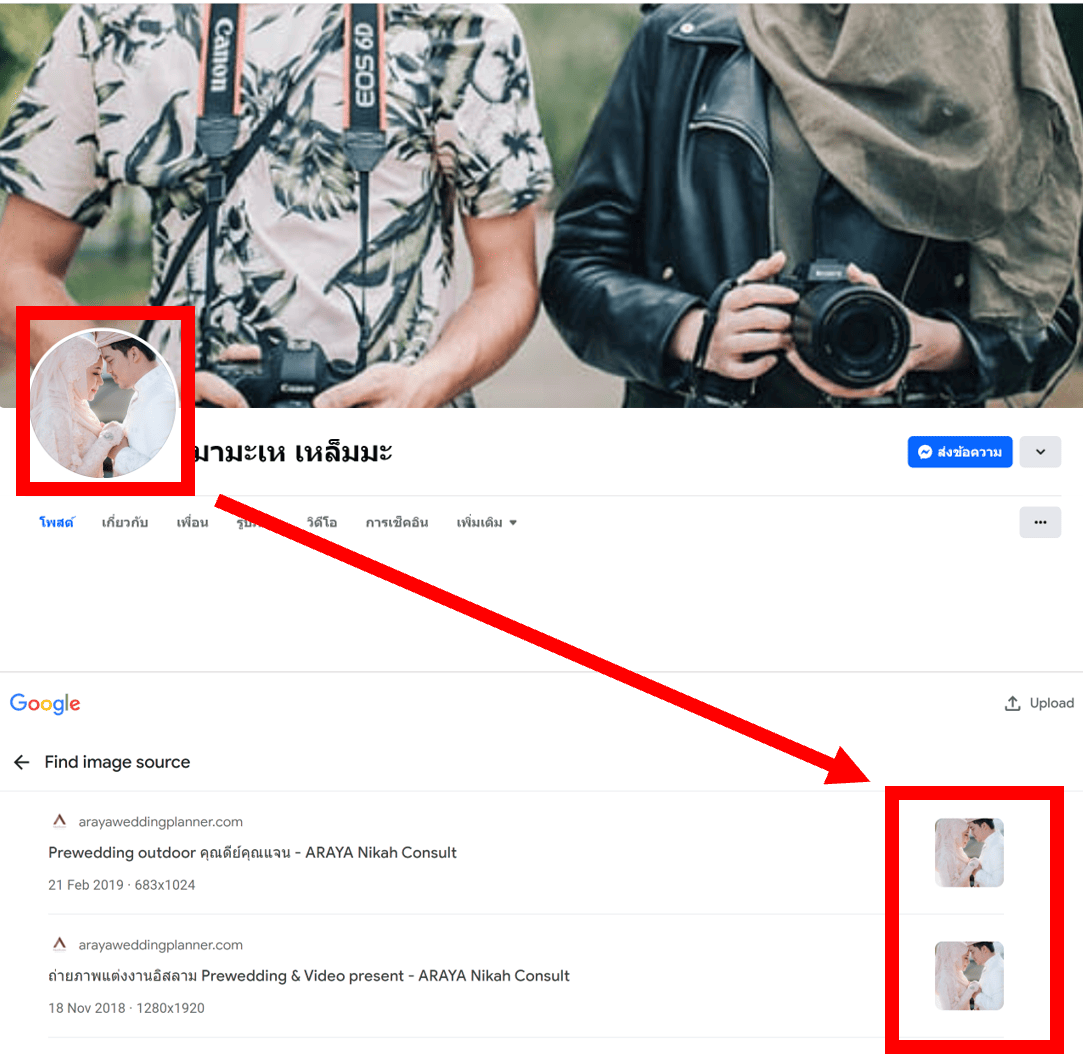 ภาพ 5: ภาพโปรไฟล์ของหนึ่งในบัญชีผู้ต้องสงสัยในกลุ่ม 14 บัญชี ที่ค้นพบจากการใช้ Google Reverse Image Search ว่านำภาพมาจากแหล่งอื่น