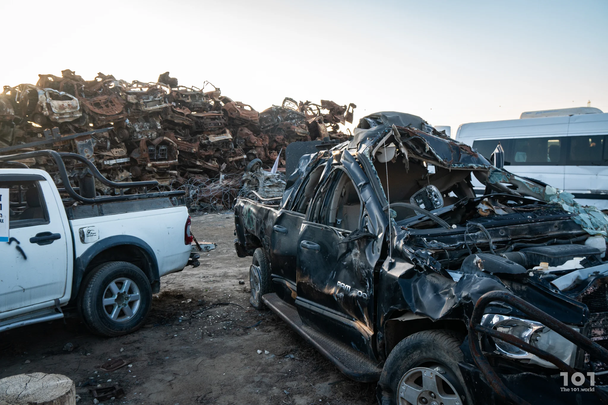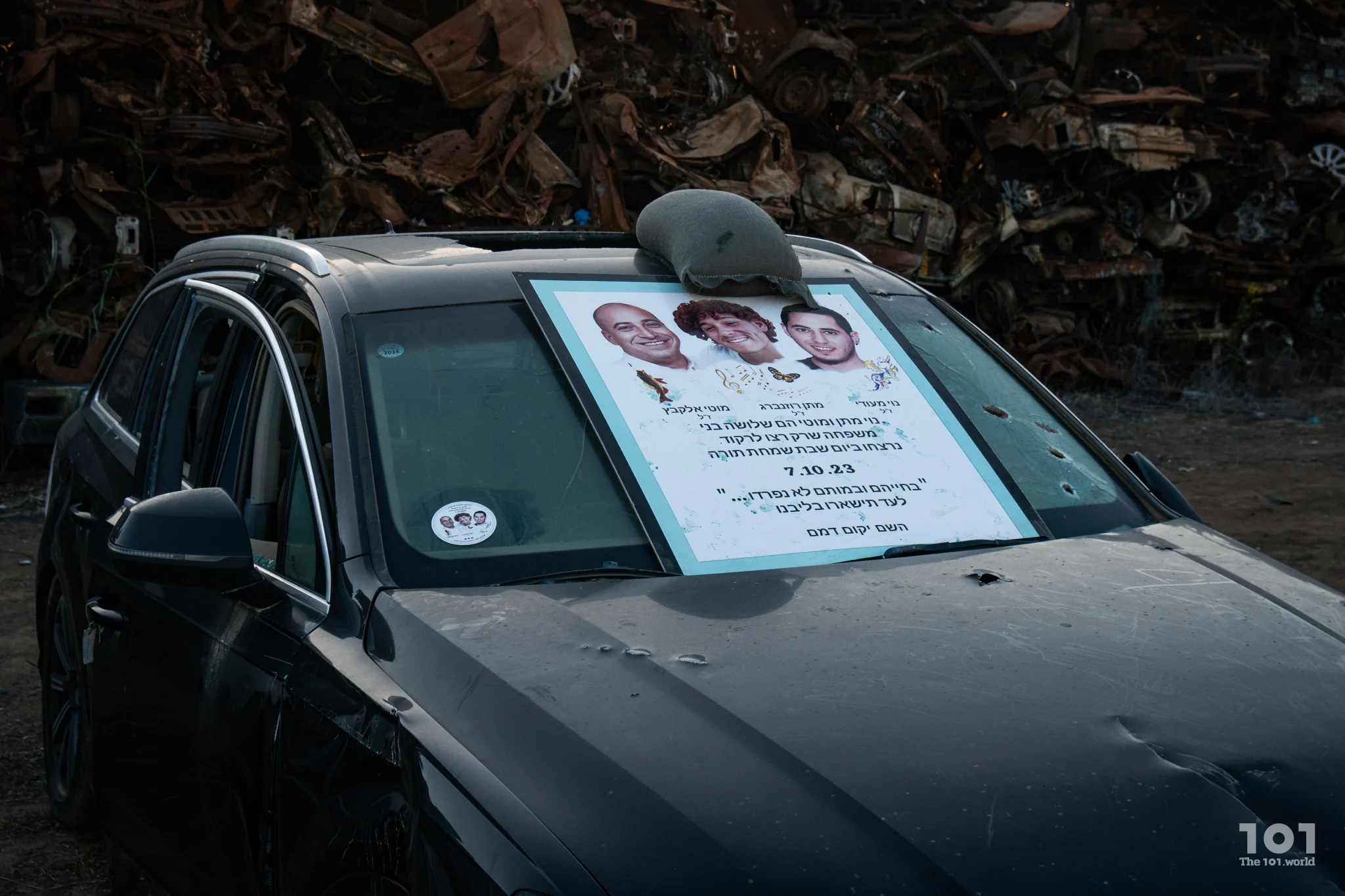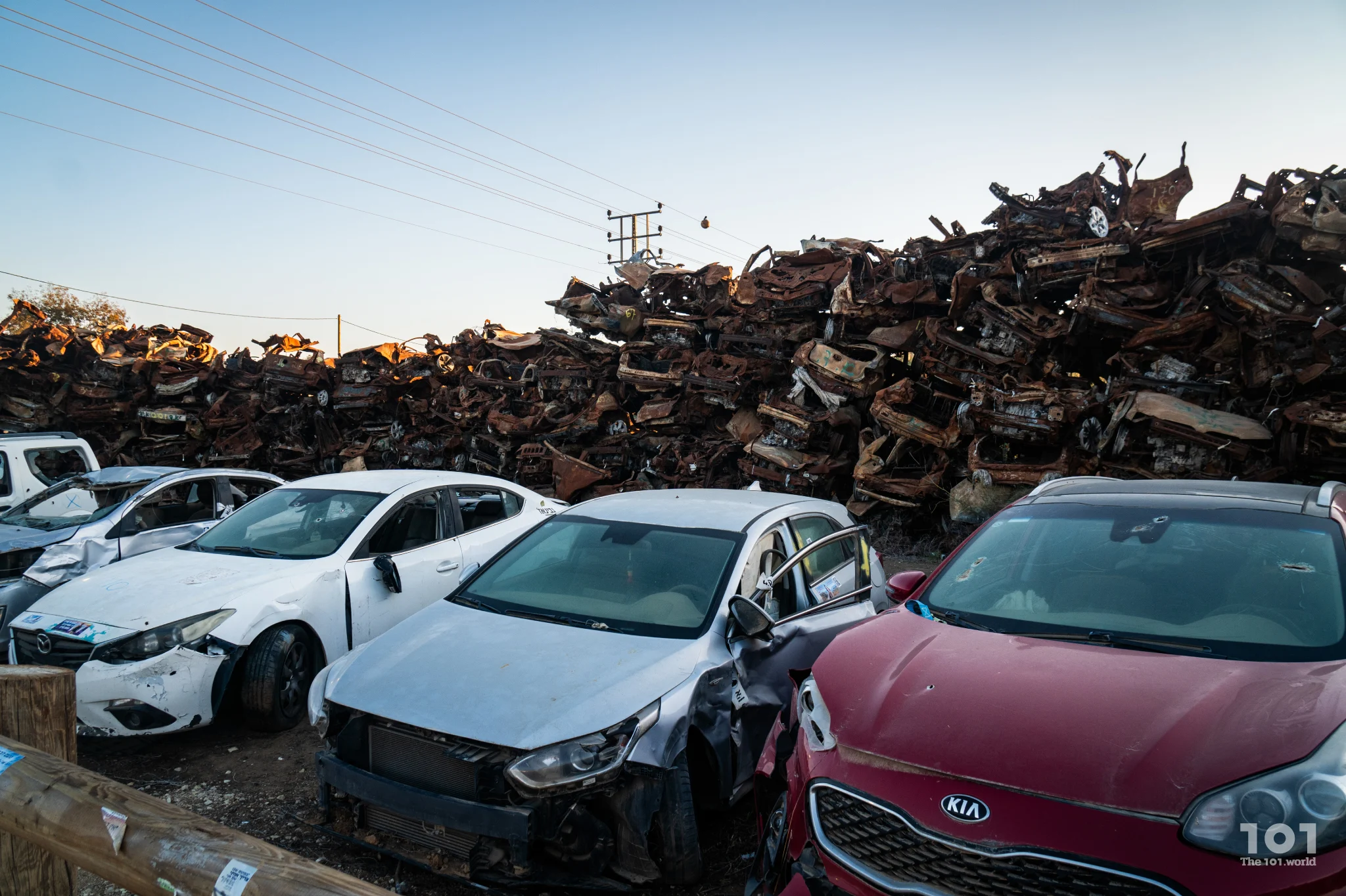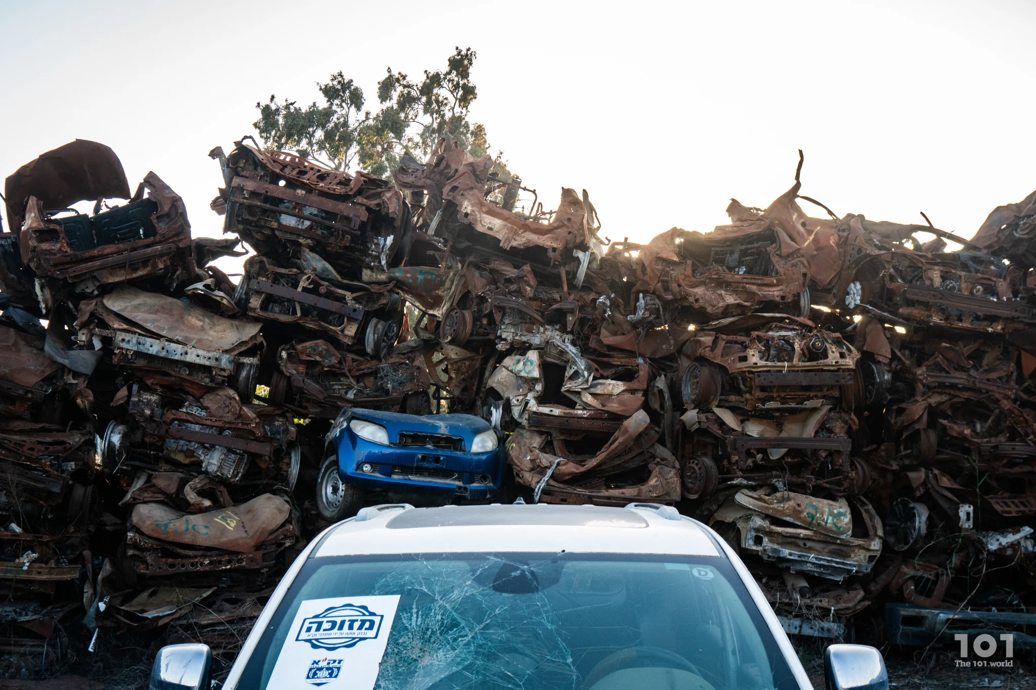 ไม่ไกลจากลานดนตรีนัก ด้วยระยะเวลาเดินทางเพียงราวๆ 15 นาที เราก็มาถึงพื้นที่รำลึกอีกจุดหนึ่งในแถบคิบบุตซ์ ทกุมา (Kibbutz Tkuma) พื้นที่ตรงนั้นคับแคบกว่าลานดนตรีโนวาหลายเท่าตัว ทว่าจุเศษซากรถยนต์และจักรยานยนต์ไว้มากถึงกว่า 800 คัน ยานยนต์เหล่านั้นล้วนเป็นยานยนต์ที่ได้รับความเสียหายจากการโจมตีของกลุ่มฮามาสในวันที่ 7 ตุลาคม 2023 โดยกระจัดกระจายอยู่ทั้งตามท้องถนน รวมไปถึงพื้นที่จัดงานเทศกาลดนตรีโนวา ก่อนที่ซากของยานยนต์เหล่านี้จะถูกนำมากองรวมกันไว้ที่ลานโล่งในชุมชนทกุมาเพื่อความสะดวกในการพิสูจน์ทรัพย์สินและซากศพภายในรถ กระทั่งกลายเป็นเสมือนสุสานยานยนต์ที่ผู้คนใช้เป็นสัญลักษณ์รำลึกความสูญเสียจากเหตุการณ์ 7 ตุลาคมไปโดยปริยาย
