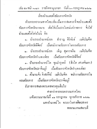 [20] “คำสั่งกองบัญชาการคณะปฏิวัติ ที่ 262/2515 เรื่อง แต่งตั้งศาสตราจารย์พิเศษ” ราชกิจจานุเบกษา เล่ม 89 ตอนที่ 108 (17 กรกฎาคม 2515) น.1.
