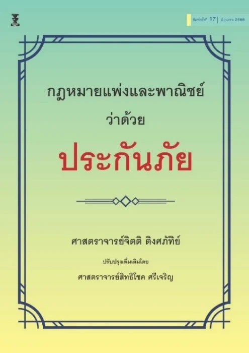 [36] คำนำ ฉบับพิมพ์ครั้งที่ 9 ใน จิตติ ติงศภัทิย์, สิทธิโชค ศรีเจริญ ปรับปรุง, กฎหมายแพ่งและพาณิชย์ว่าด้วยประกันภัย (พิมพ์ครั้งที่ 15, วิญญูชน 2563) น.7.
