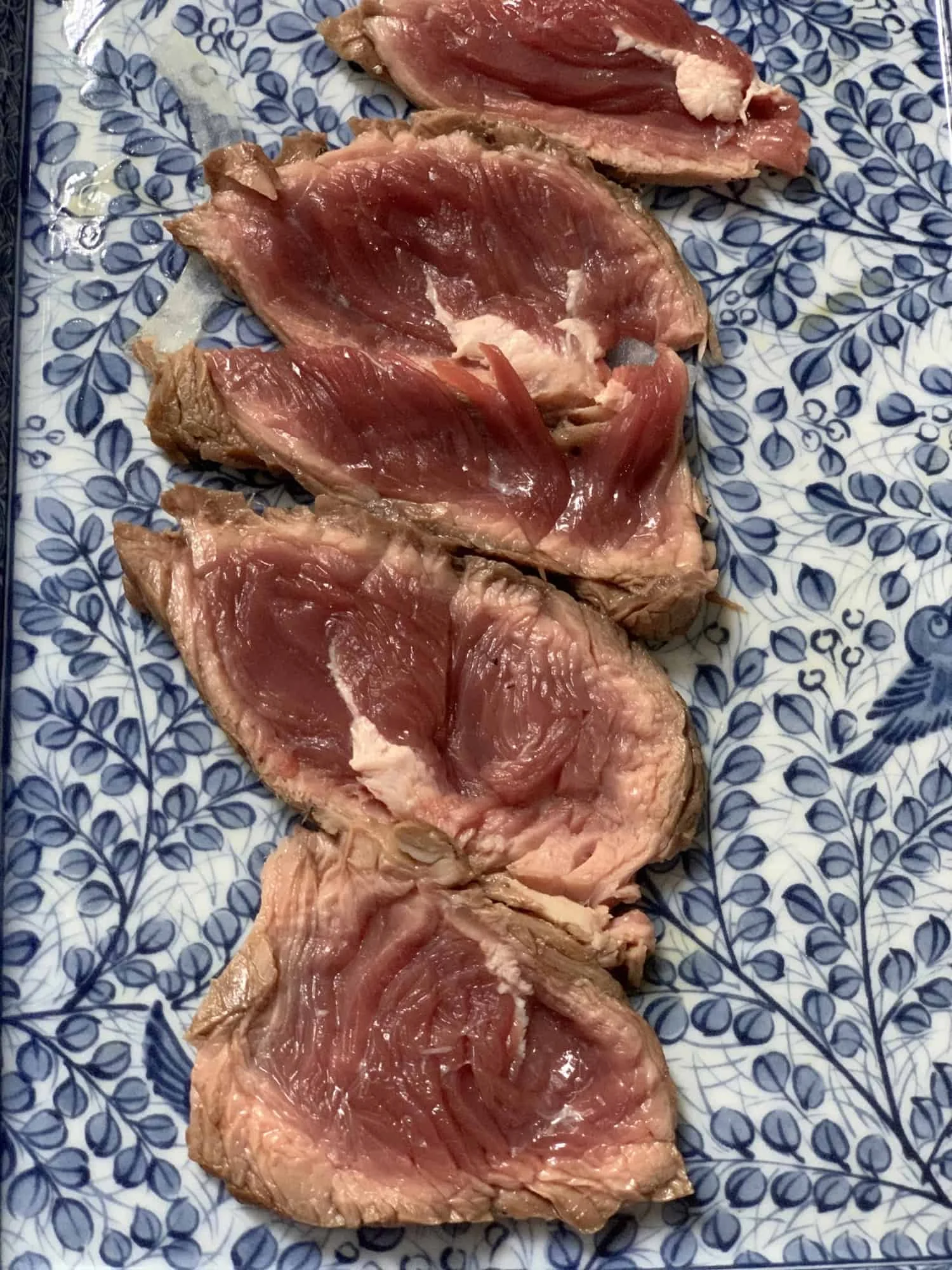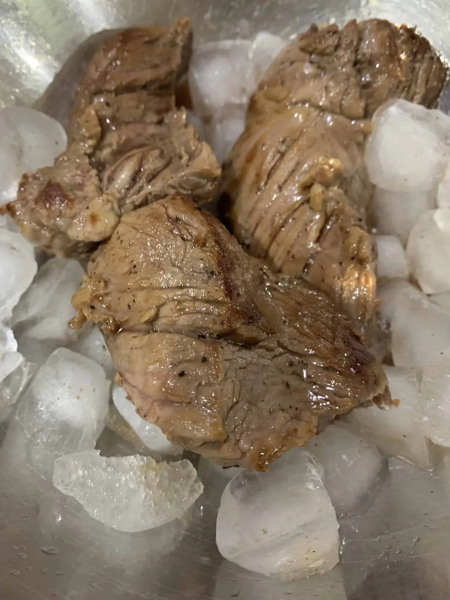 แต่ครั้งนี้ฉันแบ่งมาน็อกน้ำแข็งส่วนหนึ่ง อีกส่วนทิ้งไว้ให้อุ่นข้างนอก เพราะจะทำ นิคุ ทาทากิ แบบญี่ปุ่น แล้วอีกส่วนจะทำ นิคุ ทาทากิ น้ำตกอย่างไทยให้แซ่บสะเด็ดสะเด่า