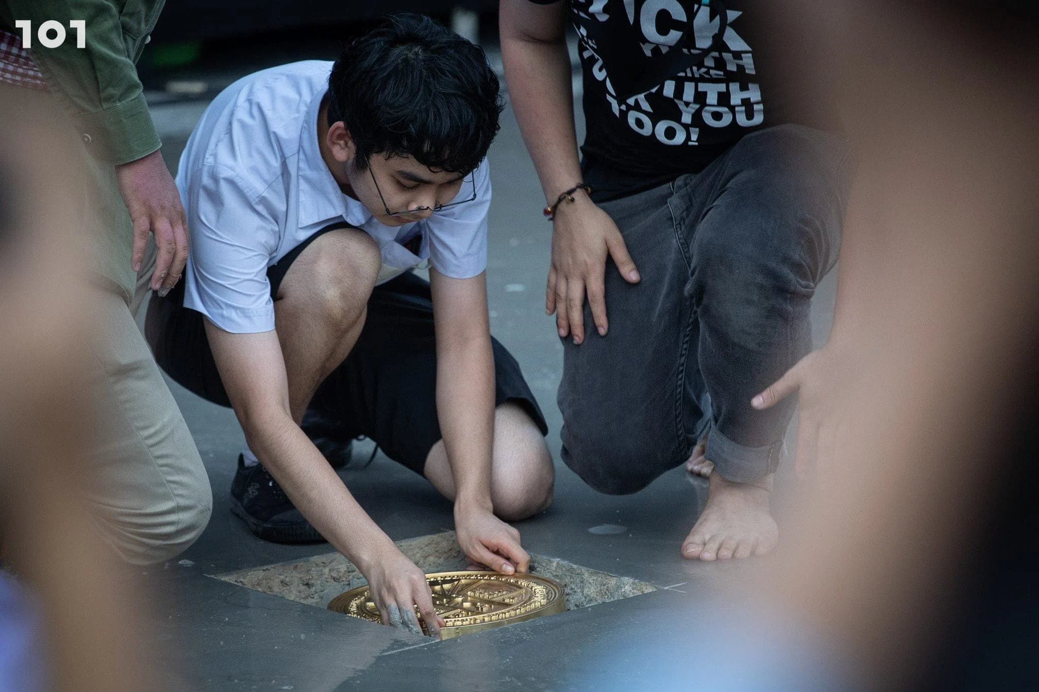 ผมไปช่วยงานพี่ๆ ที่ธรรมศาสตร์ตั้งแต่วันที่ 19 พอช่วงเย็นก็เข้าไปช่วยอยู่หลังเวทีทั้งคืน เลือกที่จะนอนหลังเวทีไปเลย คืนนั้นเป็นการปราศรัยไปเรื่อยๆ สลับกับดนตรี พอตอนเช้าผมเพิ่งรู้ว่ามีการวางแผนกันว่าจะทำการฝังหมุดคณะราษฎรที่สนามหลวง พี่ๆ เขาคุยกันว่าจะให้ใครเป็นคนถือหมุดดี คงเพราะด้วยความที่ผมเป็นนักเรียนคนเดียวที่อยู่ตรงนั้น และใส่ชุดนักเรียนด้วย พวกพี่ๆ ก็เลือกผม