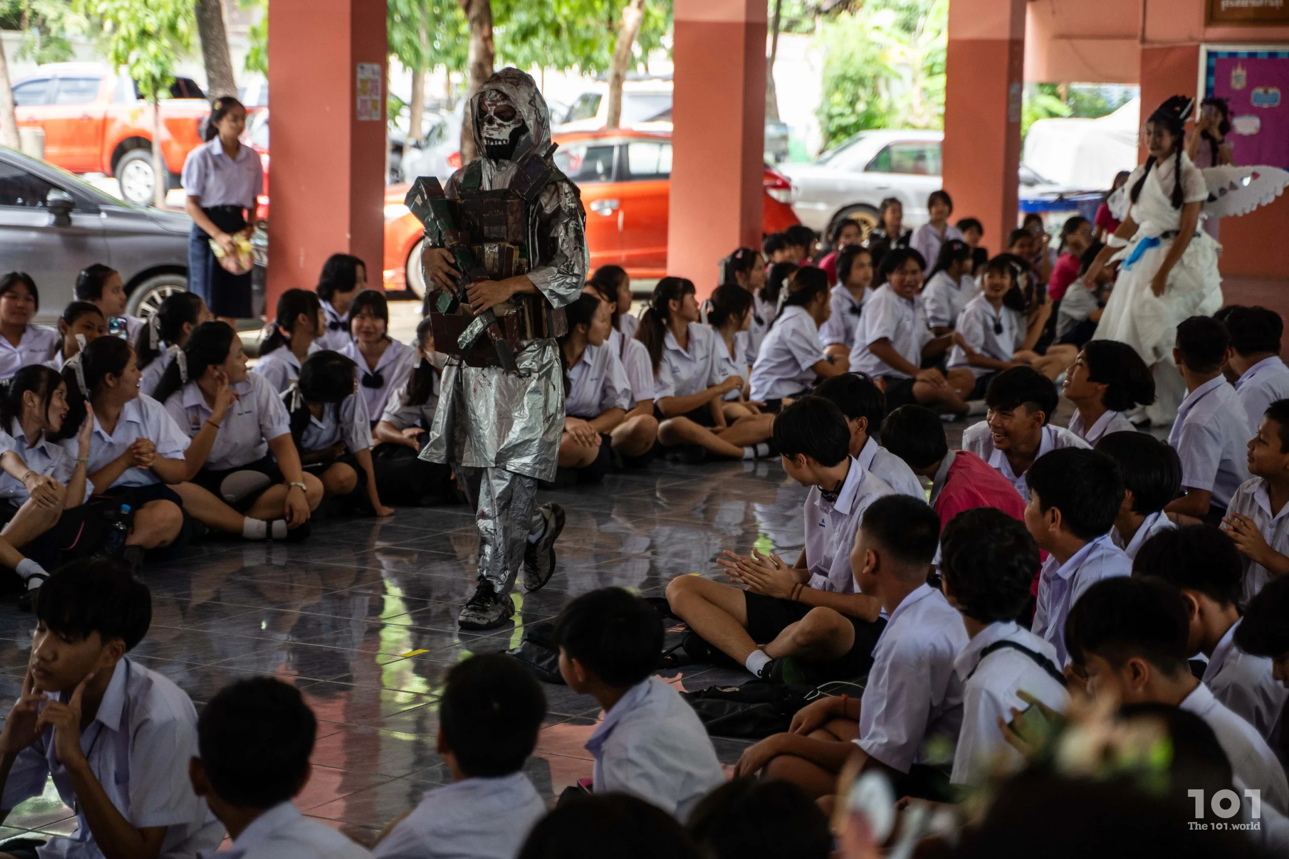 บ่ายวันจันทร์ในวันที่เราเดินทางไปเยือนโรงเรียนมักกะสัน มีการจัดกิจกรรมวันวิทยาศาสตร์ เด็กๆ ดูสนุกสนานไปกับกิจกรรมประกวดชุดรีไซเคิล หลายคนในนี้อาจโตไปเป็นดีไซเนอร์ คนที่คอยแต่งหน้าจัดผมให้เพื่อนมีแววจะเป็นช่างแต่งหน้าได้ หลายคนอาจจะบอกว่าทักษะเหล่านี้ไม่ต้องไปโรงเรียนก็ฝึกได้ แต่ปฏิเสธไม่ได้เลยว่าบรรยากาศในโรงเรียนเช่นนี้สำคัญต่อพัฒนาการและการเติบโตของพวกเขา เป็นพื้นที่ที่เอื้อให้เขาได้ค้นพบตัวเองและได้มีปฏิสัมพันธ์กับเพื่อน ถ้าเด็กๆ เหล่านี้เลือกได้ ก็คงไม่มีใครอยากร่วงหล่นจากระบบและหายไปจากโรงเรียน