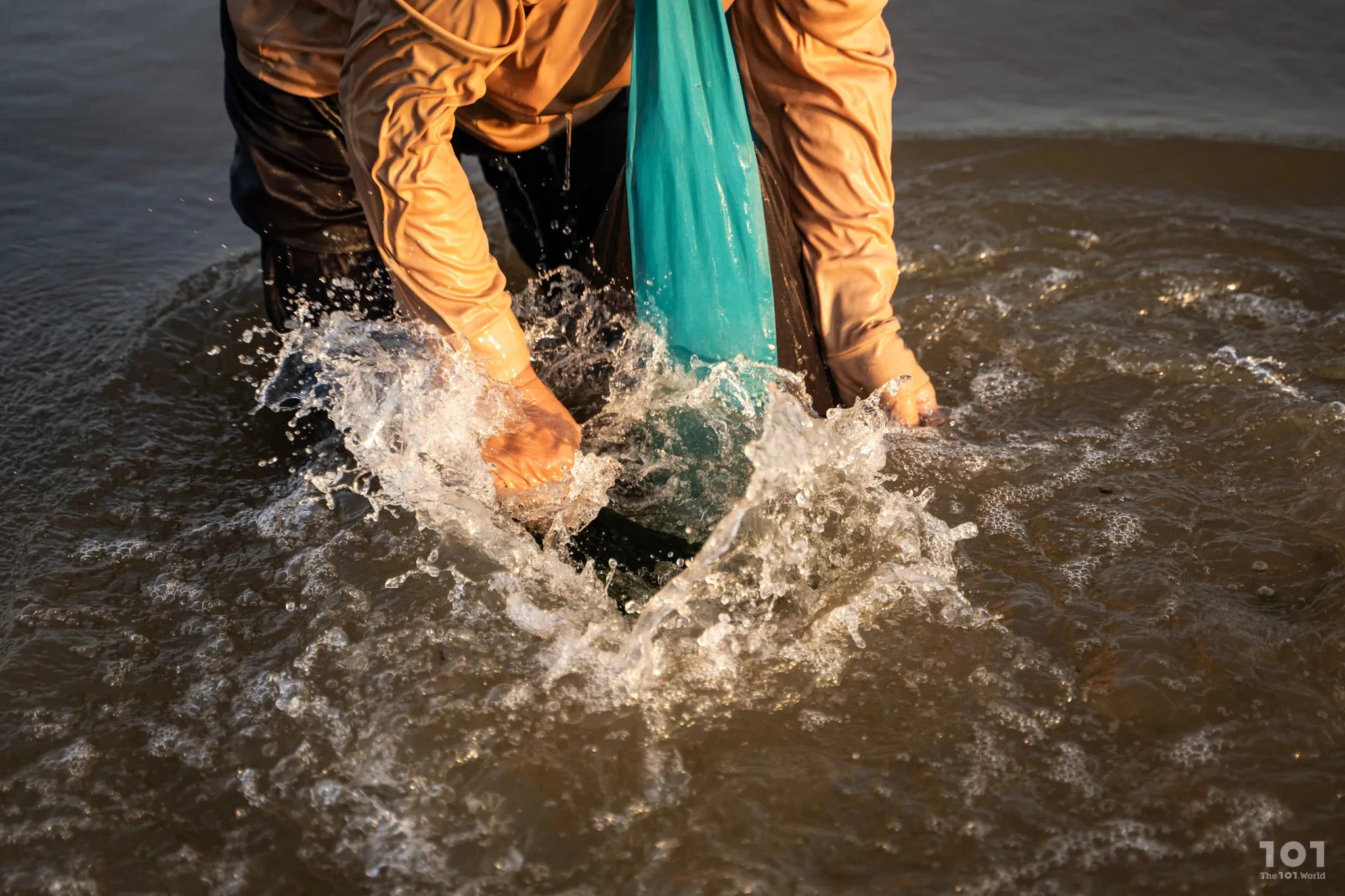 ในยามย่ำรุ่งกลางอากาศหนาวปลายเดือนมกราคม ขณะที่ดวงตะวันค่อยๆ โผล้พ้นขอบฟ้า เราเห็นชาวบ้านหาดไคร้กลุ่มเล็กๆ ไม่ถึง 10 คน ยืนก้มๆ เงยๆ กลางแม่น้ำโขง ขณะที่เรายืนมองไกลๆ จากเนินดินริมฝั่งน้ำนั้น ชาวบ้านก็เดินเข้ามาบริเวณนั้นเพิ่มขึ้นทีละคนสองคน เพื่อจะเดินลุยสายน้ำเชี่ยวกรากไปยังจุดที่เหล่าผู้มาถึงก่อนหน้ายืนอยู่ พวกเขาบอกกับเราว่ากำลังจะเดินไปตรงนั้นเพื่อเก็บ ‘ไก’