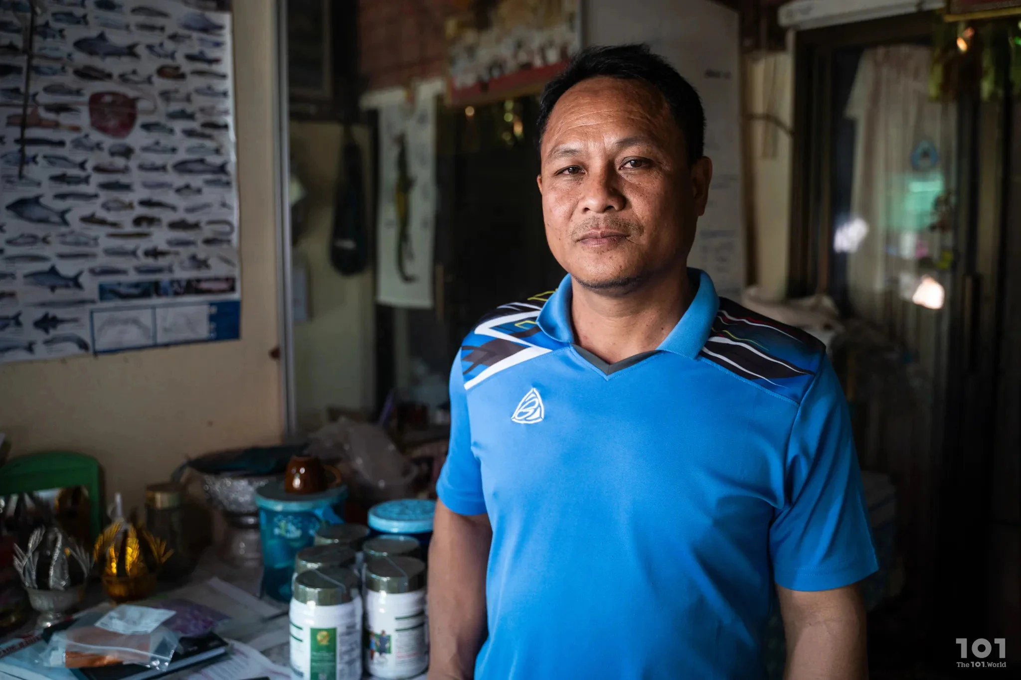 “ผมเกิดที่นี่ โตที่นี่ ทำประมงมาตั้งแต่อายุ 11-12 จนถึงปัจจุบัน ที่นี่ติดแม่น้ำโขงกับแม่น้ำอิง ทำให้การประมงเป็นตัวสร้างรายได้หลักของหมู่บ้าน เมื่อก่อนนี้คนในหมู่บ้านประมาณ 90 เปอร์เซ็นต์ทำประมงกัน เรือหาปลามีอยู่ 70-80 ลำ เมื่อก่อนมันมีปลาเยอะ หาอย่างไรมันก็ได้ แต่จนเข้าปี 2545-2547 ปลาก็เริ่มทยอยหายไป คนก็ทยอยเลิกทำประมง เรือหาปลาเฉพาะหมู่บ้านนี้ในปัจจุบันก็เหลือแค่ 11-12 ลำ”
