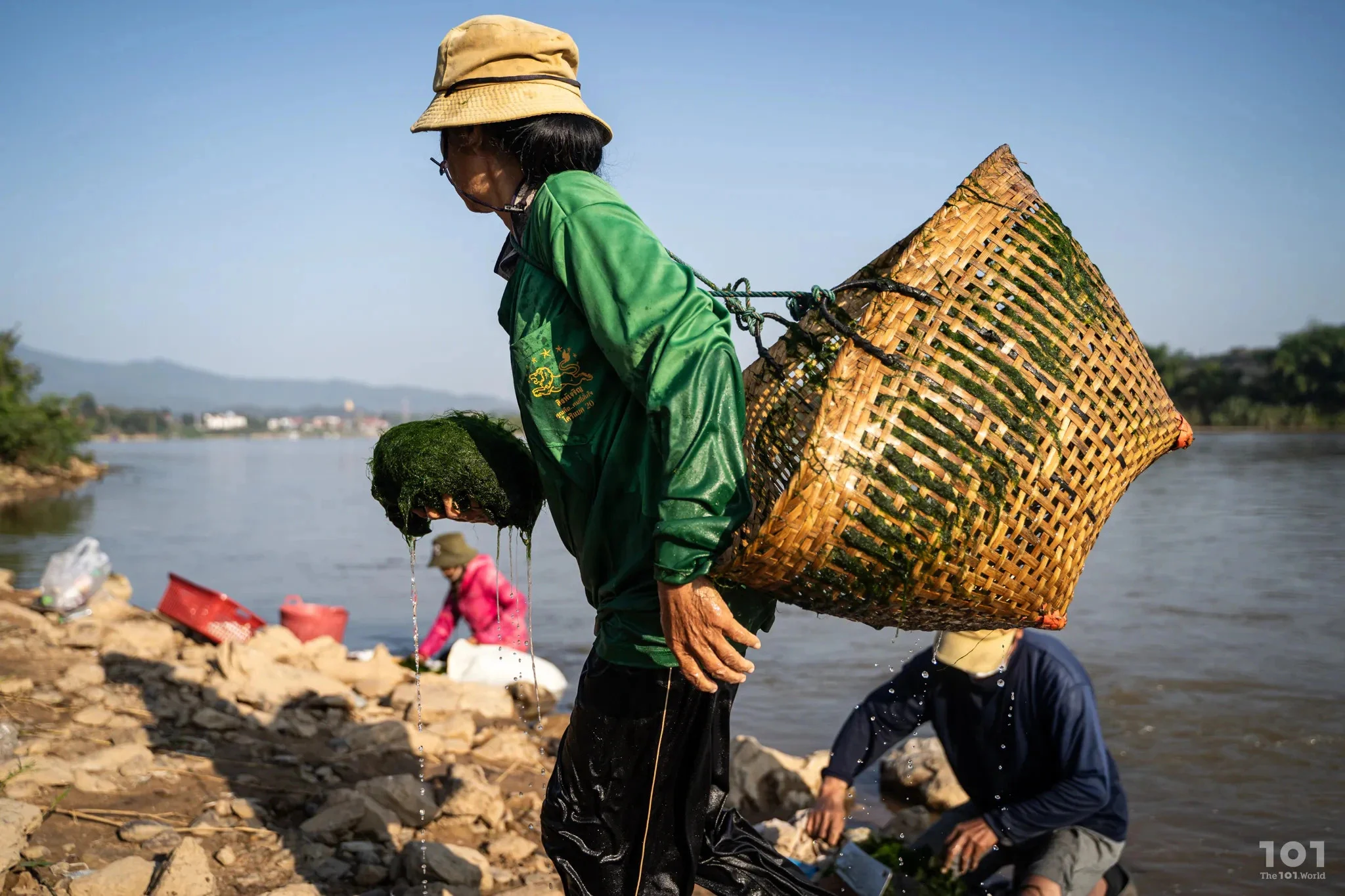 ไกคือสาหร่ายน้ำจืดเส้นสีเขียวยาวที่พบมากตามหินในแม่น้ำโขง เป็นอาหารชั้นดีของทั้งคนทั้งสัตว์น้ำ การมีอยู่ของไกถือเป็นตัวบ่งชี้ว่าระบบนิเวศลำนำโขงนั้นช่างอุดมสมบูรณ์ เพราะการที่ไกจะขึ้นในแหล่งน้ำใดแหล่งน้ำหนึ่งได้นั้นไม่ใช่เรื่องง่าย ต้องอาศัยสภาวะแวดล้อมหลายอย่างที่เอื้ออำนวย ทั้งน้ำที่ต้องใสสะอาด กระแสน้ำที่ต้องไหลเอื่อยไม่แรงเกินไป แดดต้องส่องถึง อุณหภูมิต้องพอเหมาะ และที่สำคัญ ไกยังอ่อนไหวมากต่อมลภาวะ หากแม่น้ำปนเปื้อน ไกก็ไม่สามารถขึ้นมาได้ สำหรับชาวบ้านริมโขงในเชียงราย ไกจึงถือเป็นสินในน้ำอันล้ำค่าให้พวกเขาสามารถเก็บไปทำอาหารกินหรือนำไปขายสร้างรายได้ โดยปัจจุบันการเก็บไกขายจะได้ราคาอยู่ที่กิโลกรัมละ 100 บาท