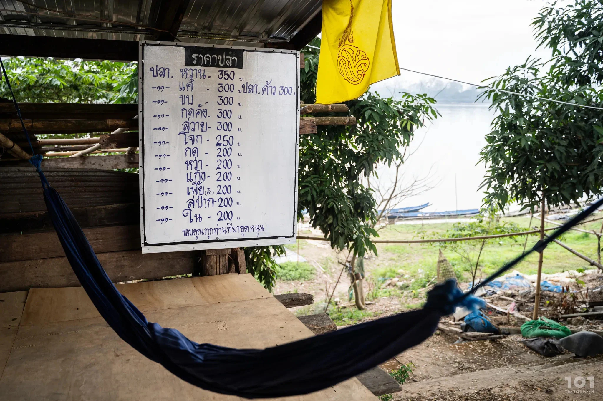 ข้อความบนแผ่นกระดานดำที่แขวนอยู่บนเสาของเพิงขายปลาเล็กๆ แห่งหนึ่งริมแม่น้ำโขง ในจังหวัดเชียงราย ทำให้เราที่ตั้งใจตื่นแต่เช้าตรู่มาศึกษาวิถีชาวประมงบริเวณนั้น ต้องชะงักและผิดหวังทันทีที่เดินทางมาถึง