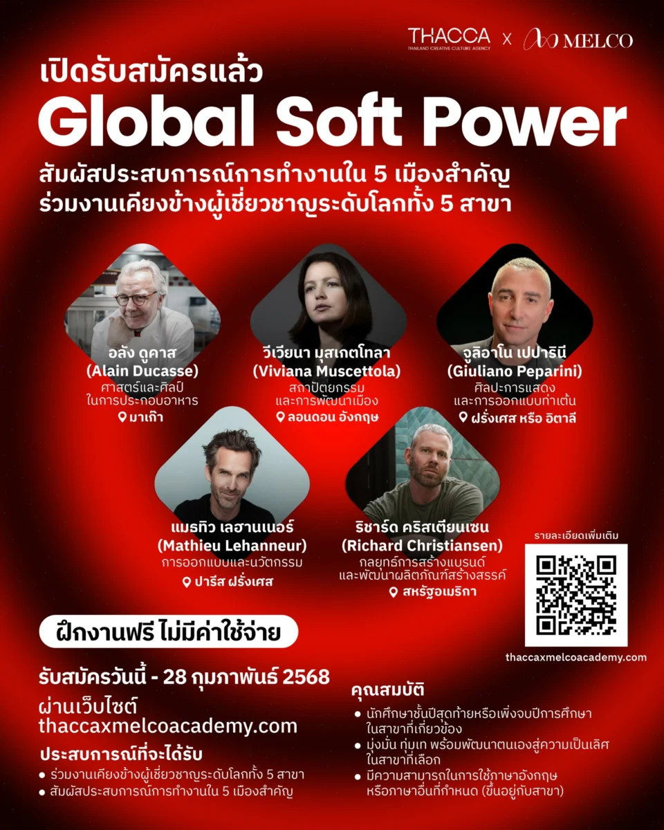 “Thailand Creative Culture Agency (THACCA) ร่วมกับ Melco Resorts & Entertainment บริษัทผู้นำด้านอุตสาหกรรมความบันเทิงครบวงจรระดับโลก” คือข้อความที่ปรากฏบนเว็บไซต์ของ THACCA หน่วยงานสนับสนุนอุตสาหกรรมซอฟต์พาวเวอร์