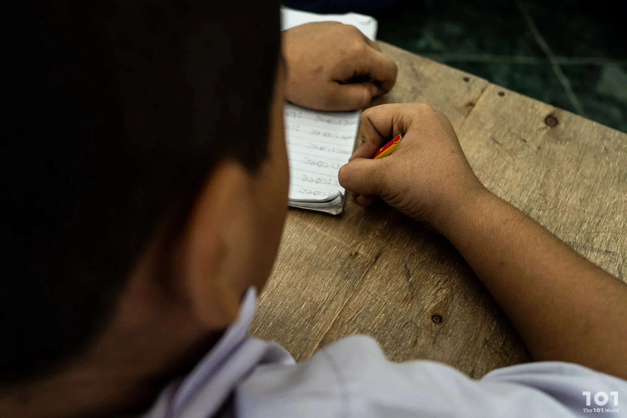 ทุกห้องเรียนที่เราเข้าไปเยี่ยมชมจะได้รับการต้อนรับด้วยการกล่าวคำว่าสวัสดี ทั้ง 3 ภาษา ไทย พม่า และอังกฤษ อย่างเสียงดังฟังชัด แม้หลายคนยังเขินอายที่จะใช้ภาษาไทยแต่เราก็เห็นความพยายามเรียนรู้ผ่านสมุดจด ผ่านแบบฝึกหัด หรือสะท้อนผ่านดินสออันสั้นกุดที่คงจะผ่านการใช้งานมาอย่างหนัก บรรยากาศในห้องเรียนไม่ต่างอะไรกับโรงเรียนไทยที่เราเติบโตมา เด็กๆ มีความฝัน มีเป้าหมายอยากมีอาชีพการงานที่ดีไม่ต่างกัน เพียงแต่สัญชาติของเด็กเหล่านี้ทำให้อาจไปถึงฝันได้ไม่ง่าย