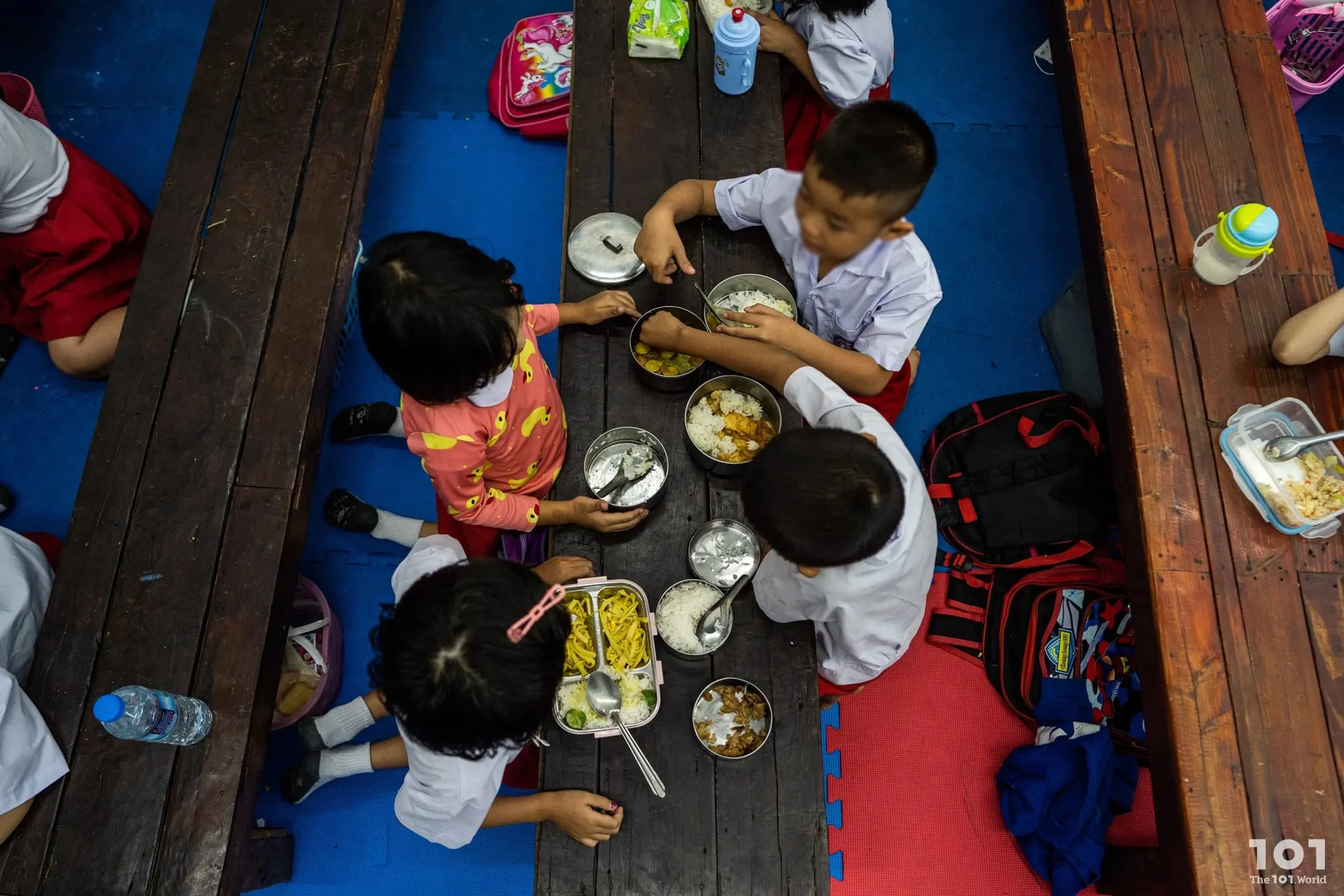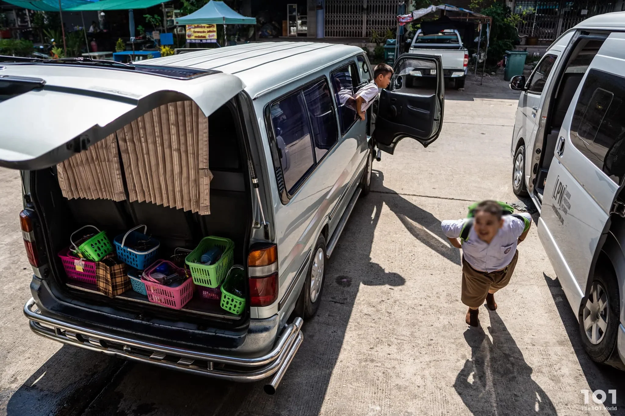 ออมพาเราเดินทัวร์ทุกห้องเรียนของนักเรียนที่นี่ แต่ละมุมของห้องเราจะเห็นตะกร้าจำนวนมากวางรวมกันอยู่ ออมบอกว่านี่คือตะกร้าที่ผู้ปกครองจัดเตรียมให้ลูกใส่สิ่งของจำเป็น เช่น แปรงสีฟัน กล่องใส่อาหารที่ห่อมาจากบ้าน เพราะนักเรียนมีความหลากหลายของความเชื่อและศาสนา ผู้ปกครองจึงรับหน้าที่จัดการอาหารการกินของลูกๆ เอง สำหรับนักเรียนที่อยู่ประจำที่นี่ โรงเรียนจะทำอาหารให้ทุกมื้อ โรงเรียนยังจัดเตรียมชุดนักเรียนให้คนละ 1 ชุด รวมไปถึงหนังสือและอุปกรณ์การเรียนอื่นๆ ที่จำเป็น อีกทั้งมีบริการรถรับ-ส่ง จากชุมชนที่แรงงานพม่าอาศัยอยู่อย่างหนาแน่น