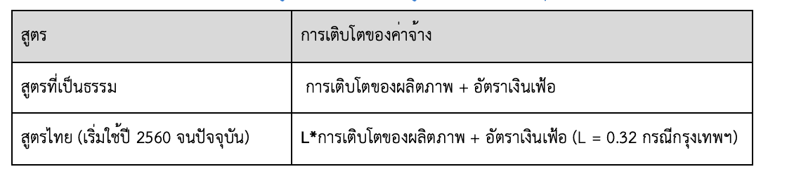 การปรับขึ้นค่าจ้างที่เป็นธรรม = การเติบโตของผลิตภาพแรงงาน + อัตราเงินเฟ้อ