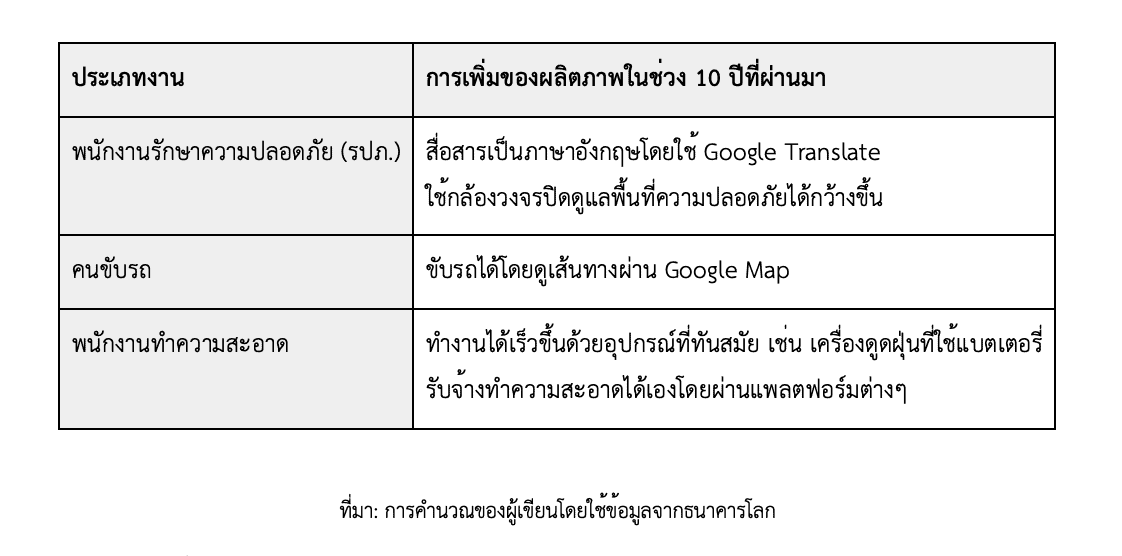 ตารางที่ 1 การเติบโตของผลิตภาพแรงงานที่ได้รับค่าจ้างขั้นต่ำ