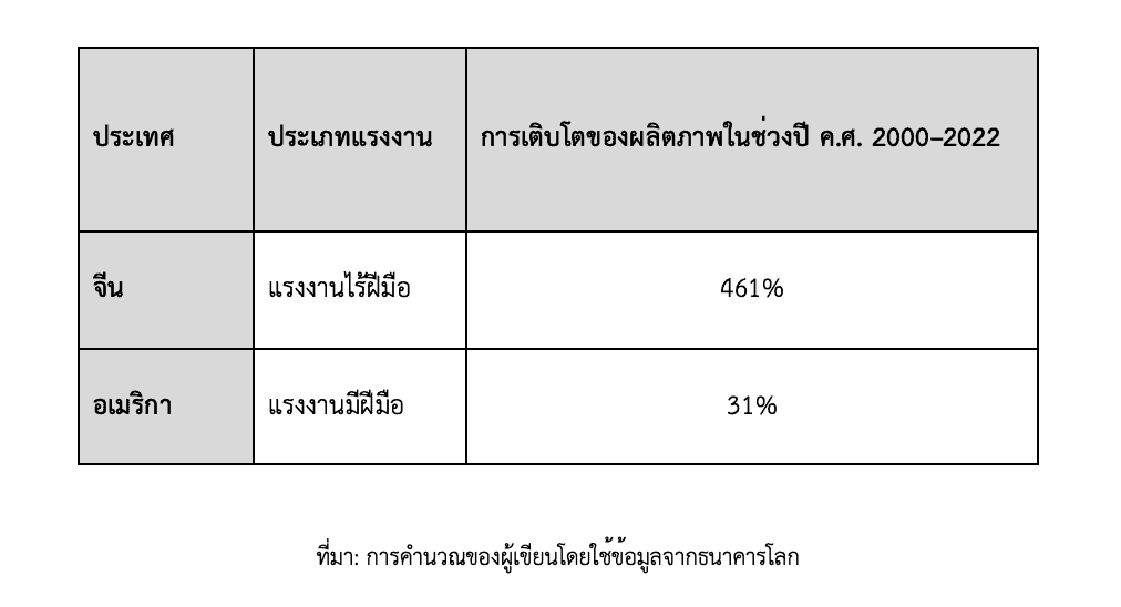 ตารางที่ 2 การเติบโตของผลิตภาพแรงงานในประเทศจีนเปรียบเทียบกับในสหรัฐอเมริกา
