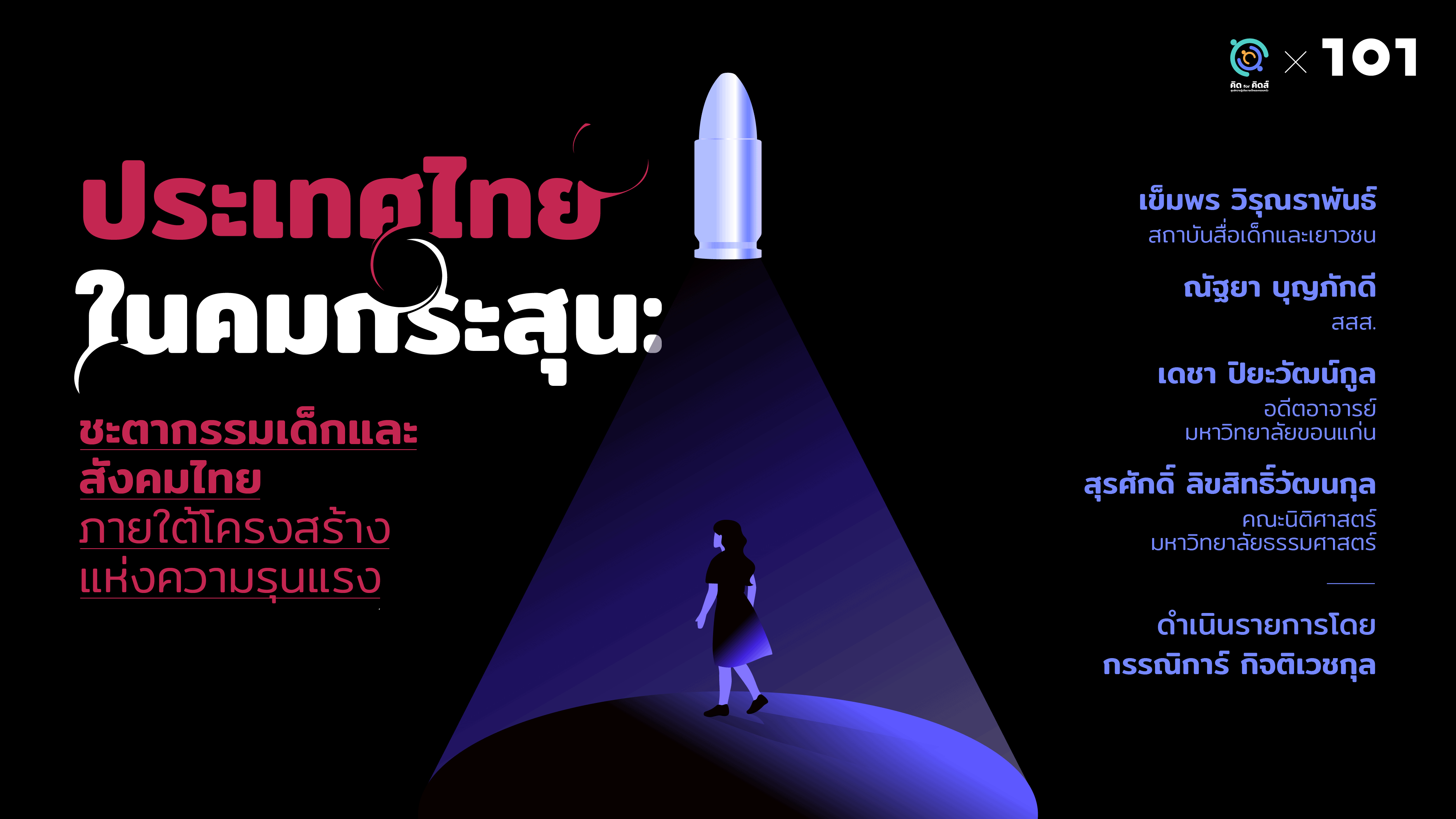 101 ร่วมกับ คิด for คิดส์ – ศูนย์ความรู้นโยบายเด็กและครอบครัว เปิดวงสนทนาทำความเข้าใจเหตุการณ์นี้อย่างรอบด้าน เพื่อหาคำตอบว่า สังคมไทยควรตั้งหลักรับมือเรื่องนี้อย่างไร ต้องทำอะไรบ้างเพื่อเยียวยาความสูญเสียที่เกิดขึ้นทั้งต่อผู้เสียหายและต่อสังคม และถึงที่สุดแล้ว เราจะถอดบทเรียนอะไรเพื่อไม่ให้เหตุการณ์เช่นนี้เกิดขึ้นอีก