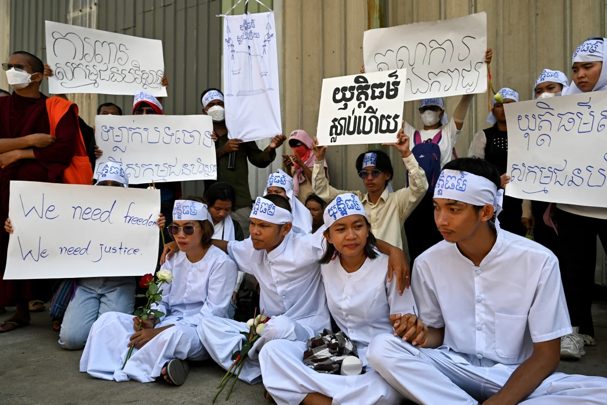 การชุมนุมของ Mother Nature Cambodia ในกัมพูชา เพื่อเรียกร้องความเป็นธรรมให้ตะวัน-แบม (ซ้าย) และ วันเฉลิม สัตย์ศักดิ์สิทธิ์ (ขวา)