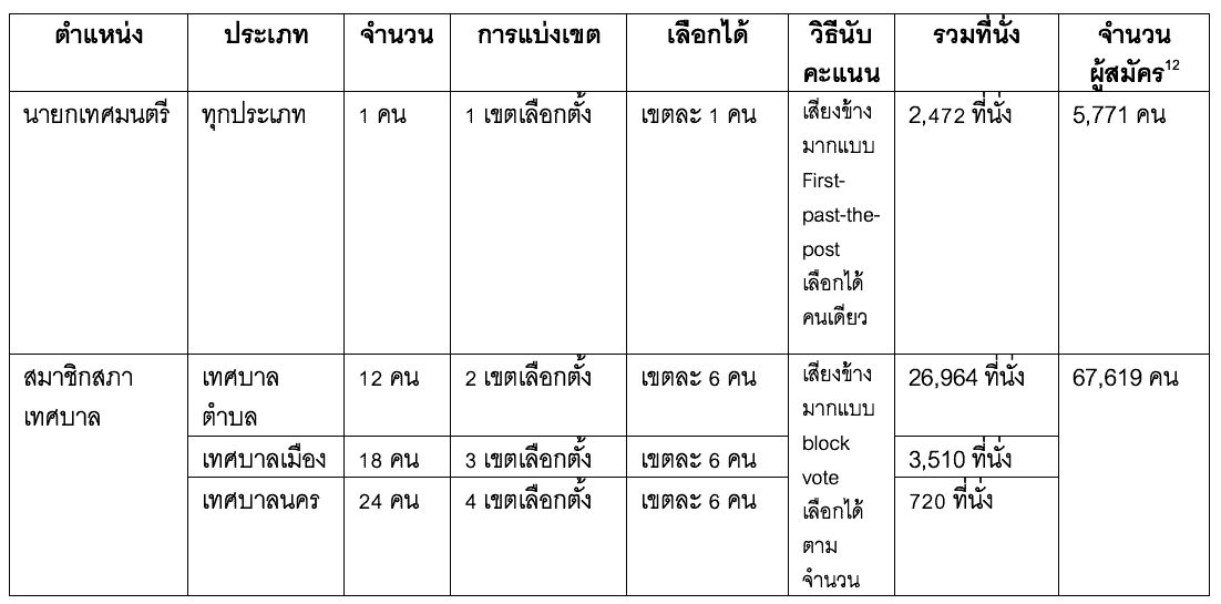 ระบบการเลือกตั้งเทศบาล จำนวนที่นั่งและผู้สมัครรับเลือกตั้งในปี 2564