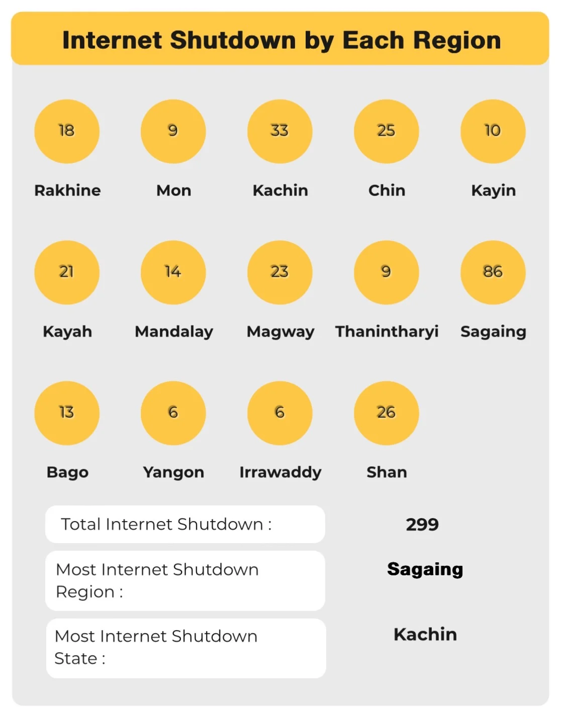 สถิติการตัดสัญญาณอินเทอร์เน็ตในแต่ละภาคของพม่าหลังรัฐประหาร | ที่มา: Myanmar Internet Project