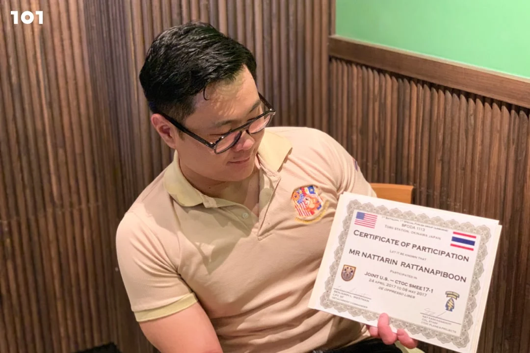 อีกอย่างคือ ทหารอเมริกันดูดุไง กลุ่มหน่วยรบพิเศษเขาไม่ยิ้ม ไม่แชร์เรื่องส่วนตัว คือก็เป็นธรรมชาติของเขาแหละ แต่ตอนนั้นผมก็รู้สึกว่าไม่มีเพื่อนเลย ไปอยู่กับเขาประมาณเดือนกว่าๆ รู้สึกเหมือนจะบ้าตาย (หัวเราะ) พอกลับบ้านก็รู้สึกว่า งานนี้สนุกดีนะ แต่เครียดมากเลย งานอื่นจะเป็นแบบนี้ไหม ก็ไม่อยากทำแล้ว เลยเบนเข็มไปทางงานทนายแทน แต่พอลองไปฝึกงานที่สำนักงานทนาย บอกตรงๆ ว่ามันไม่อินเลย ผมคิดถึงงานแบบที่ทำกับกองทัพ เลยตัดสินใจโทรไปของานเขาเลยว่ามีแบบนี้อีกไหม เขาเลยให้ผมไปเป็นล่ามประจำ ทำได้ประมาณ 4-5 ปี มีฝึกอะไรมาเราก็ไปทำหมด