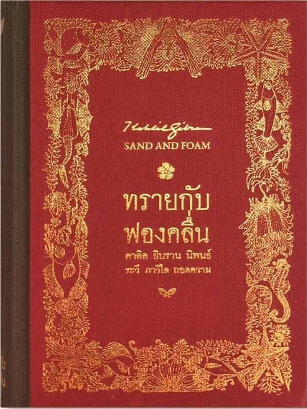 “ปกหนังสือเล่มนี้ กล่าวอย่างรวบรัด คือความโดดเด่นและให้ความรู้สึกหรูหรา มีคุณค่าทางงานศิลป์ และสะท้อนเนื้อหาภายในอย่างกลมกลืน อีกทั้งการเลือกใช้วัสดุปกที่ช่วยเสริมคุณค่าของงานออกแบบให้สวยงามยิ่งขึ้น ปกสีเข้ม เนื้อสัมผัสด้าน ตัดกับการปั๊มฟอยล์ทองอย่างหรูหรา ลวดลายปั๊มทองรอบกรอบเป็นสรรพสัตว์ในท้องทะเล และสิ่งต่างๆ ในธรรมชาติ ซึ่งสัมพันธ์กับชื่อเล่ม ทรายกับฟองคลื่น (Sand and Foam) อย่างเป็นรูปธรรม การจัดเรียงรายละเอียดอันซับซ้อน แต่ ‘สมมาตร’ และจบด้วยการจัดวางตัวอักษรกึ่งกลางปก คลาสสิค ลงตัว ให้บรรยากาศของปรัชญานิพนธ์ที่ไร้กาลเวลา อันเป็นงานฝีมือ (ถนัดมือ) ตามแบบฉบับสนพ.ผีเสื้อ”