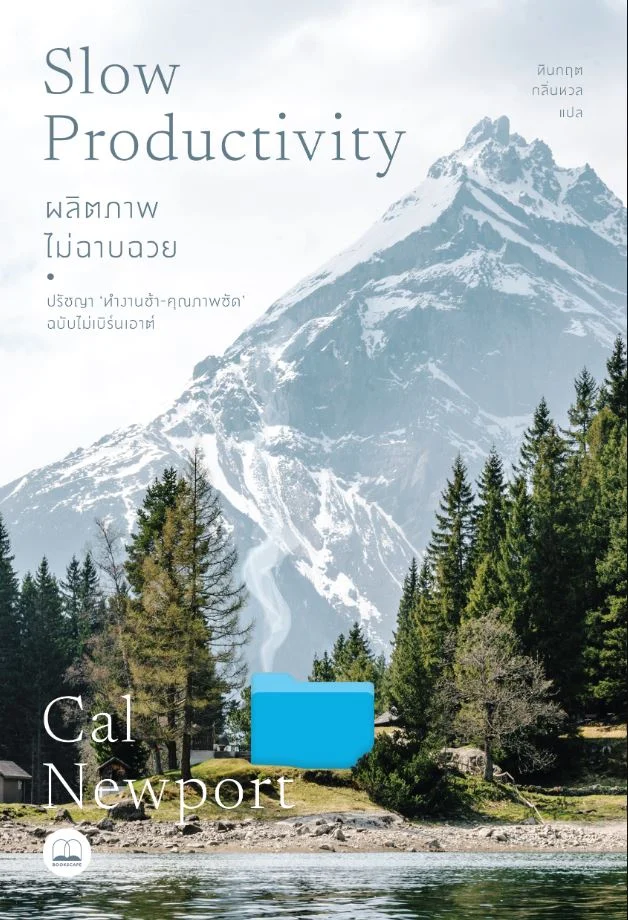 “ความจริงภาพนี้มันเป็นภาพของ กระท่อมไม้กลางป่า วิวธรรมชาติ เป็นตัวแทนสื่อถึงชีวิต slow life ได้เป็นอย่างดีอยู่แล้ว และการที่เอาสัญลักษณ์ ‘โฟลเดอร์’ ซึ่งเป็นเหมือนตัวแทนของ productivity ในโลกยุคดิจิทัล เอามาวางแทนกระท่อมไม้ คือการแสดงความหมายของหนังสือทั้งเล่มออกมาได้ โดยไม่ต้องใช้ลูกเล่นไรเยอะ”