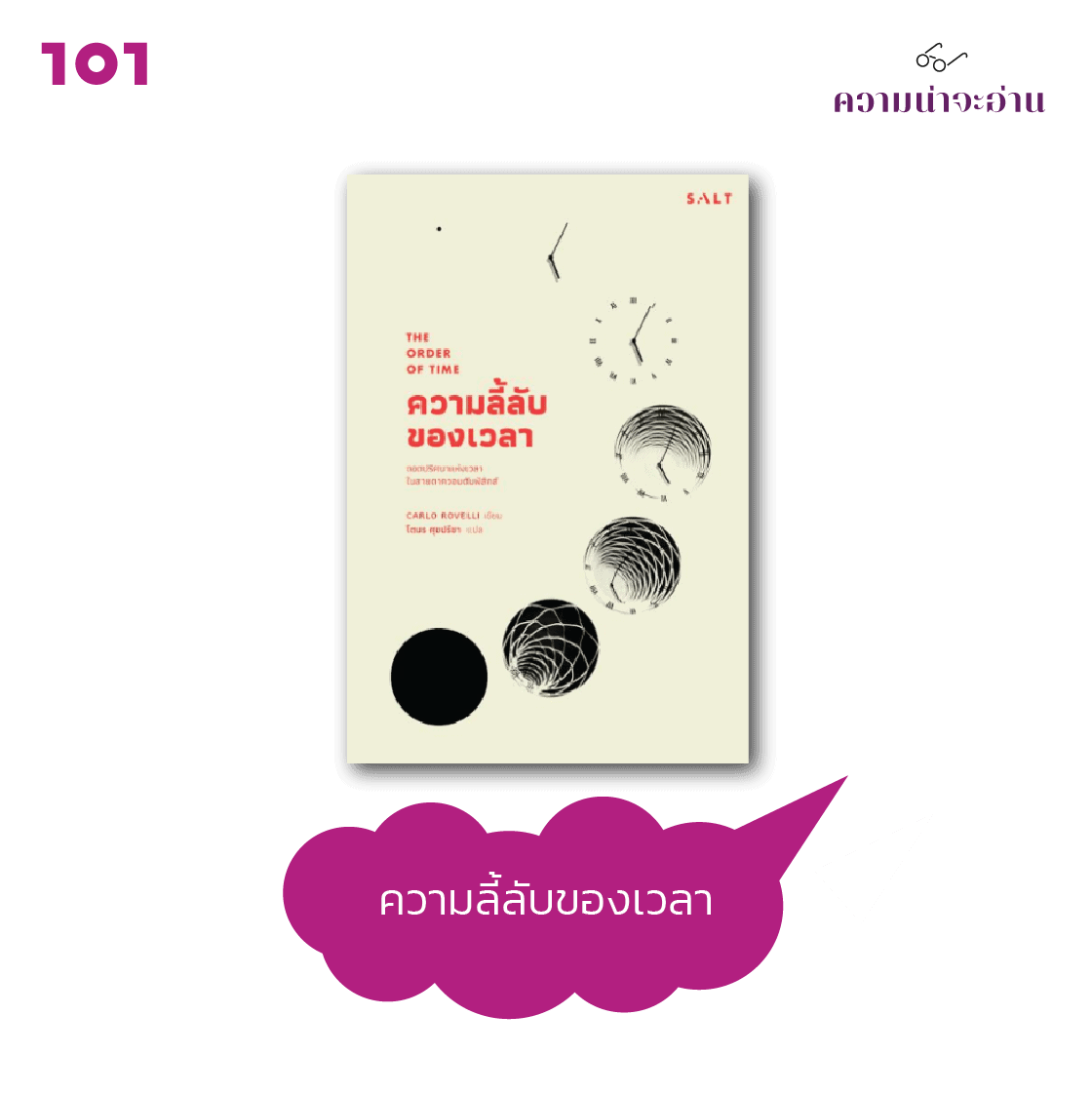 ความลี้ลับของเวลาเป็นสิ่งที่มนุษย์พยายามหาคำตอบมาอย่างยาวนาน หนังสือเล่มนี้พยายามหาคำตอบและถอดรื้อความลี้ลับนี้ โดยทำความเข้าใจผ่านนักปรัชญา นักคณิตศาสตร์และนักวิทยาศาสตร์ระดับโลก ตั้งแต่อริสโตเติล ไอแซก นิวตัน และอัลเบิร์ต ไอน์สไตน์ แม้เรื่องราวจะดูซับซ้อนเข้าใจยาก แต่ผู้เขียนใช้ภาษาเรียบง่าย และเขียนถึง ‘เวลา’ ได้อย่างงดงาม จนพาเราล่องไปในปรัชญาและวิทยาศาสตร์อย่างเพลิดเพลิน