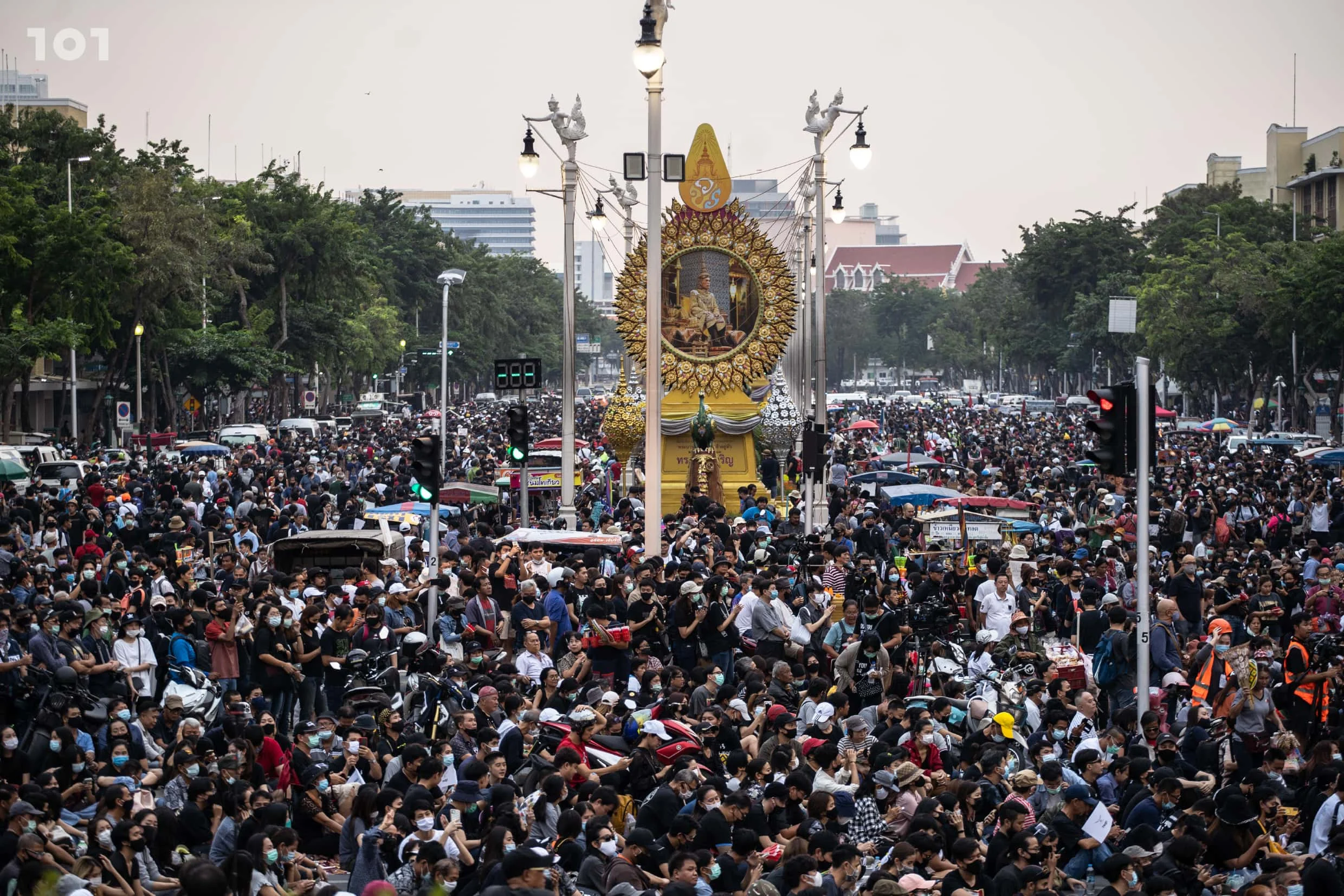 จนเมื่อเกิดการชุมนุมเมื่อปี 2563 มันเปลี่ยนไปมาก เป็นการเปลี่ยนแปลงทั้งบรรยากาศด้านการเมือง เปลี่ยนแปลงเรื่องเกี่ยวกับ norm และวัฒนธรรมทางด้านการเมือง สำหรับผม มันเหมือนเป็น watershed เป็นหมุดหมายของประวัติศาสตร์การเมืองไทยสมัยใหม่เลย ที่ผมกล้าพูดได้ขนาดนั้นเพราะว่า มายก๊อด นี่เป็นครั้งแรกเลยนะที่การพูดถึงสถาบันกษัตริย์กลายเป็นญัตติสาธารณะ (public agenda) ใช่ เราเคยพูดถึงเรื่องสถาบันกษัตริย์ในการชุมนุมคนเสื้อแดงเมื่อ 12 ปีก่อน ก่อนที่เสื้อแดงจะถูกปราบปราม มีวิพากษ์วิจารณ์สถาบันกษัตริย์ ซึ่งสำหรับผมถือว่าเป็นก้าวย่างที่ดี แต่การพูดถึงสถาบันกษัตริย์ ณ ตอนนั้น ไม่เคยเป็นญัตติสาธารณะอย่างเป็นทางการ