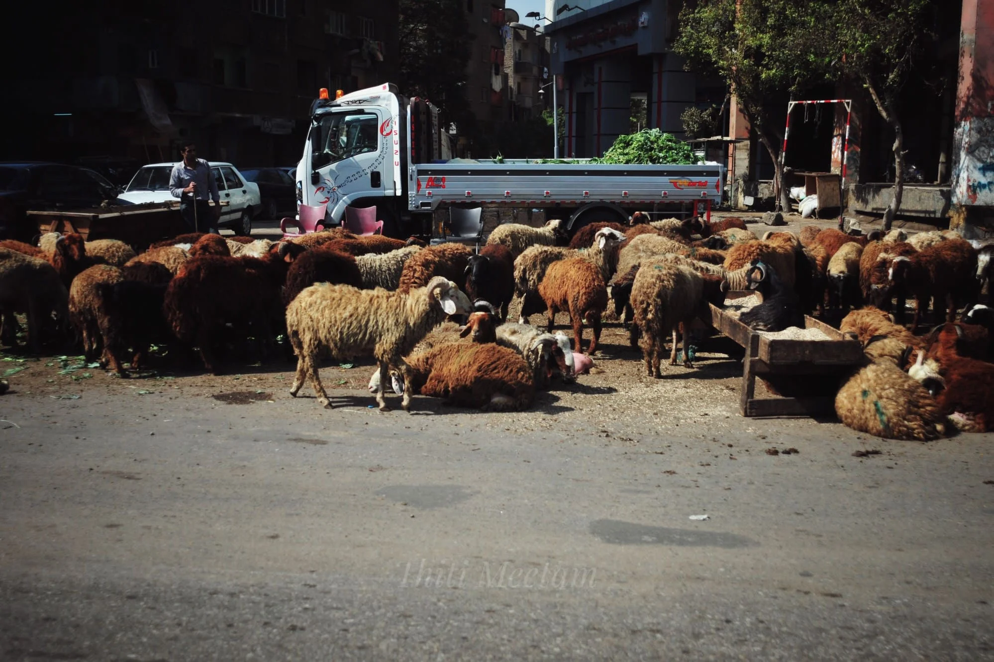 ครึ่งเลนบนถนนกลายเป็นที่เลี้ยง “คอรูฟ” หรือ “แกะ” ตามแยกไฟแดงทหารอียิปต์ถืออาวุธปืนกลยาวเฝ้ารักษาสถานการณ์ด้วยความเคร่งขรึม