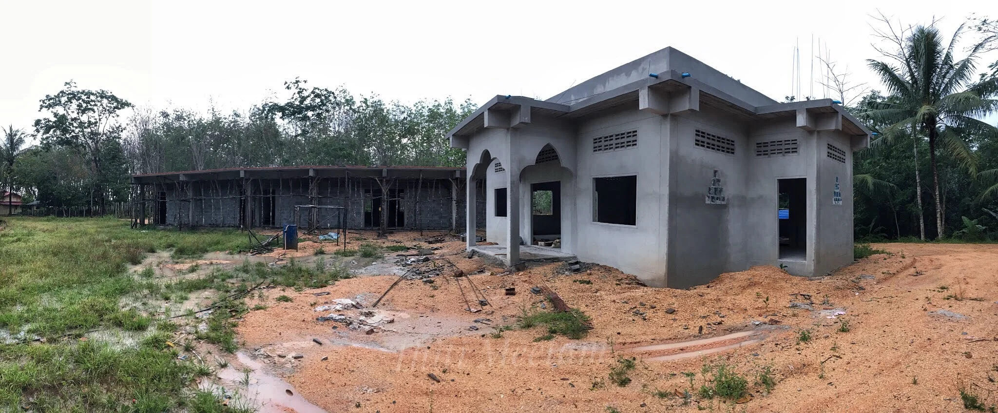 อาคารเรียนและมัสยิดลงเสาเข็ม วางคานและก่อผนังคอนกรีตแล้ว เหลือแต่ต่อเติมและตกแต่งก็สมบูรณ์