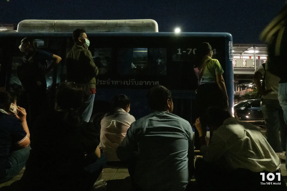 ที่อนุสาวรีย์ชัยสมรภูมิ ประชาชนจำนวนมากยืนรอรถเมล์แน่นเต็มเกาะพหลโยธิน และเมื่อรถเมล์เคลื่อนมาจอดเทียบป้าย ผู้โดยสารต่างขึ้นรถและแทรกตัวเข้าไปจนแทบไม่เหลือที่ว่าง ทำให้รถโดยสารทุกคันเต็มตั้งแต่ต้นทาง จนผู้โดยสารที่รอรถเมล์ตามป้ายถัดไปไม่สามารถขึ้นรถและต้องยืนรอรถเมล์ต่อ