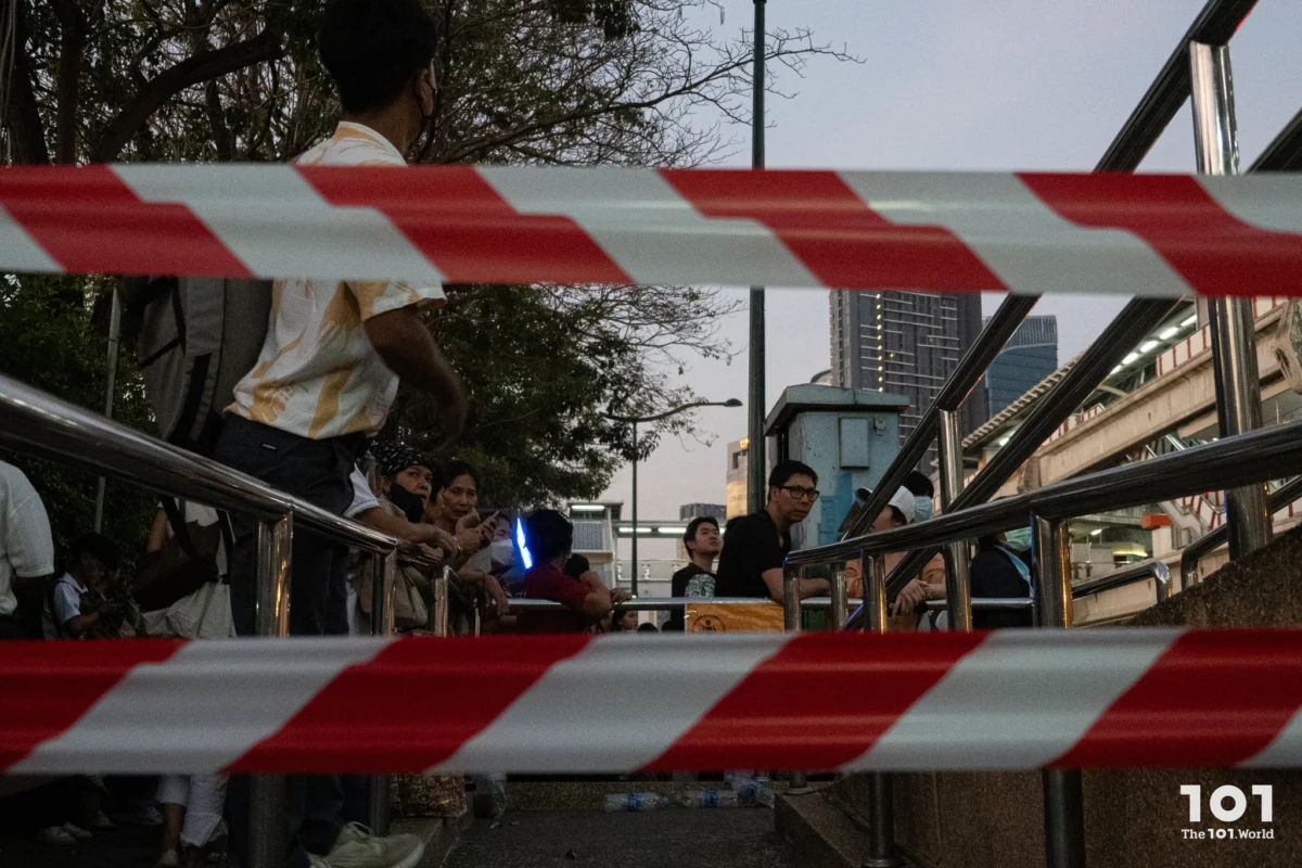 รถไฟฟ้าปิด จราจรติดขัด ประชาชนแออัดรอรถเมล์ ยังไม่ได้กลับบ้านหลังแผ่นดินไหว