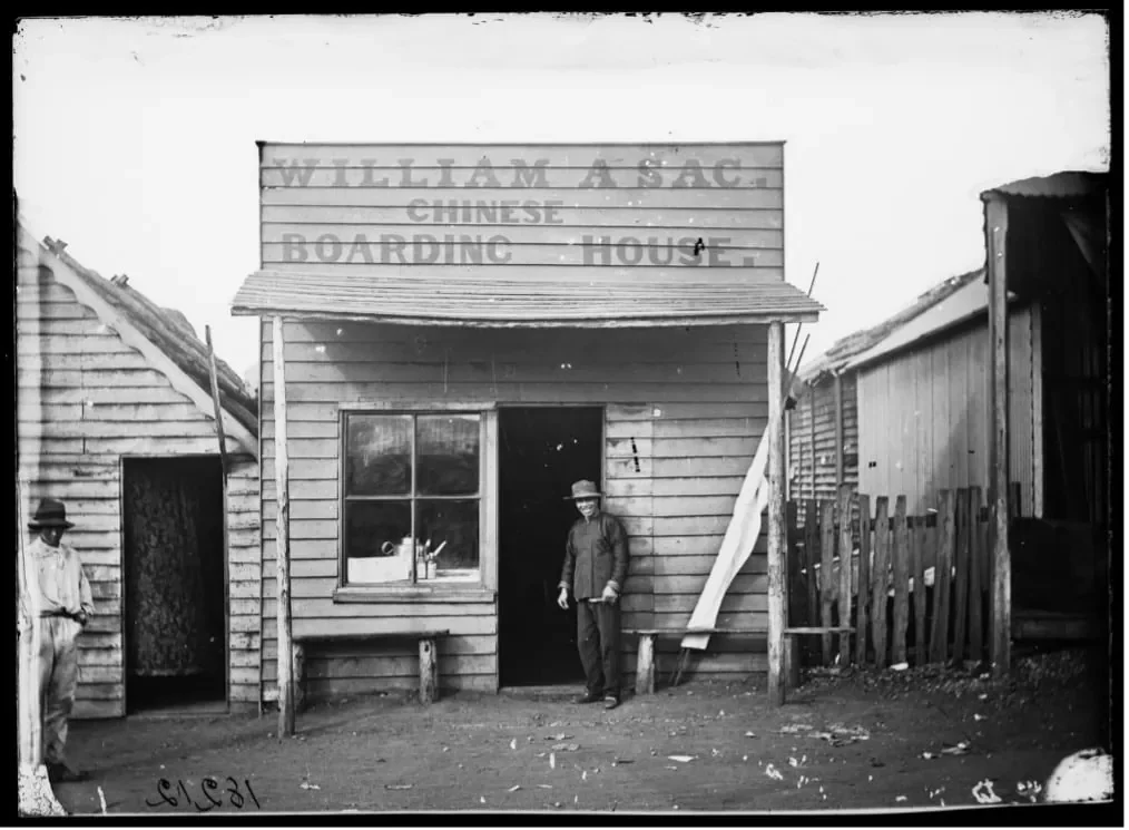 ที่พักของชาวจีนในเมืองกุลกอง (Gulgong) เมืองทางตะวันตกของรัฐนิวเซาท์เวลส์ซึ่งเป็นอีกเมืองหนึ่งที่มีการทำเหมืองทอง ภาพโดย William A. / ที่มาภาพ: หอสมุดแห่งรัฐนิวเซาท์เวลส์