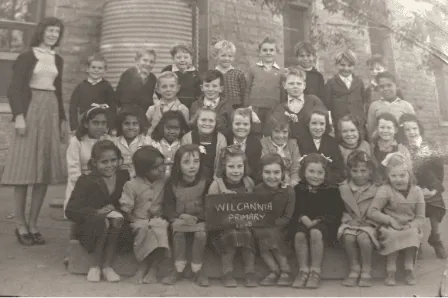 ภาพของพ่อสามีผู้เขียน แถวที่ 2 นับจากบนสุด เด็กคนที่ 2 จากขวามือ ถ่ายภาพกับคุณครูและเพื่อนร่วมชั้น ณ โรงเรียนประถมวิลคันเนีย ปี 1948 จะสังเกตเห็นว่ามีเด็กอะบอริจินในชั้นเรียนจำนวนหนึ่ง