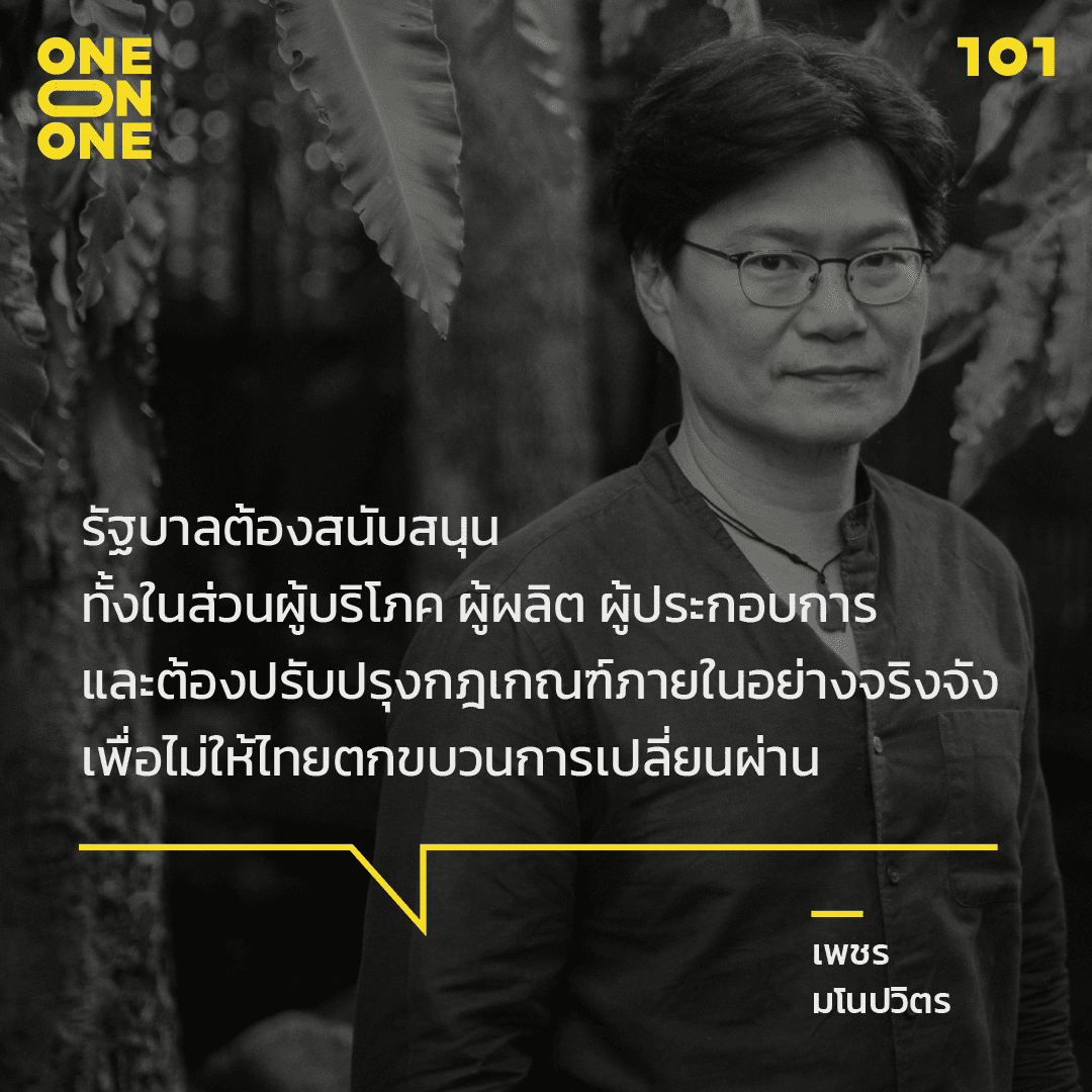 นอกจากนี้ ในเชิงเทคโนโลยีก็เป็นการกึ่งบังคับให้มีการเปลี่ยนผ่าน เพราะต้นทุนในการผลิตพลังงานหมุนเวียนก็ต่ำลง เพียงแต่ว่าระบบผลิตพลังงานของประเทศไทยยังค่อนข้างถูกผูกขาดอยู่ ถึงเวลาแล้วหรือยังที่จะมีการกระจายอำนาจในเรื่องการผลิตไฟฟ้า เช่น ความจริงในตอนนี้ทุกคนสามารถติดตั้งโซลาเซลล์ตามหลังคาเพื่อผลิตกระแสไฟฟ้าเองได้แล้ว โดยไม่ต้องพึ่งระบบส่วนกลาง เรื่องนี้ก็จะช่วยเร่งในการเปลี่ยนผ่าน