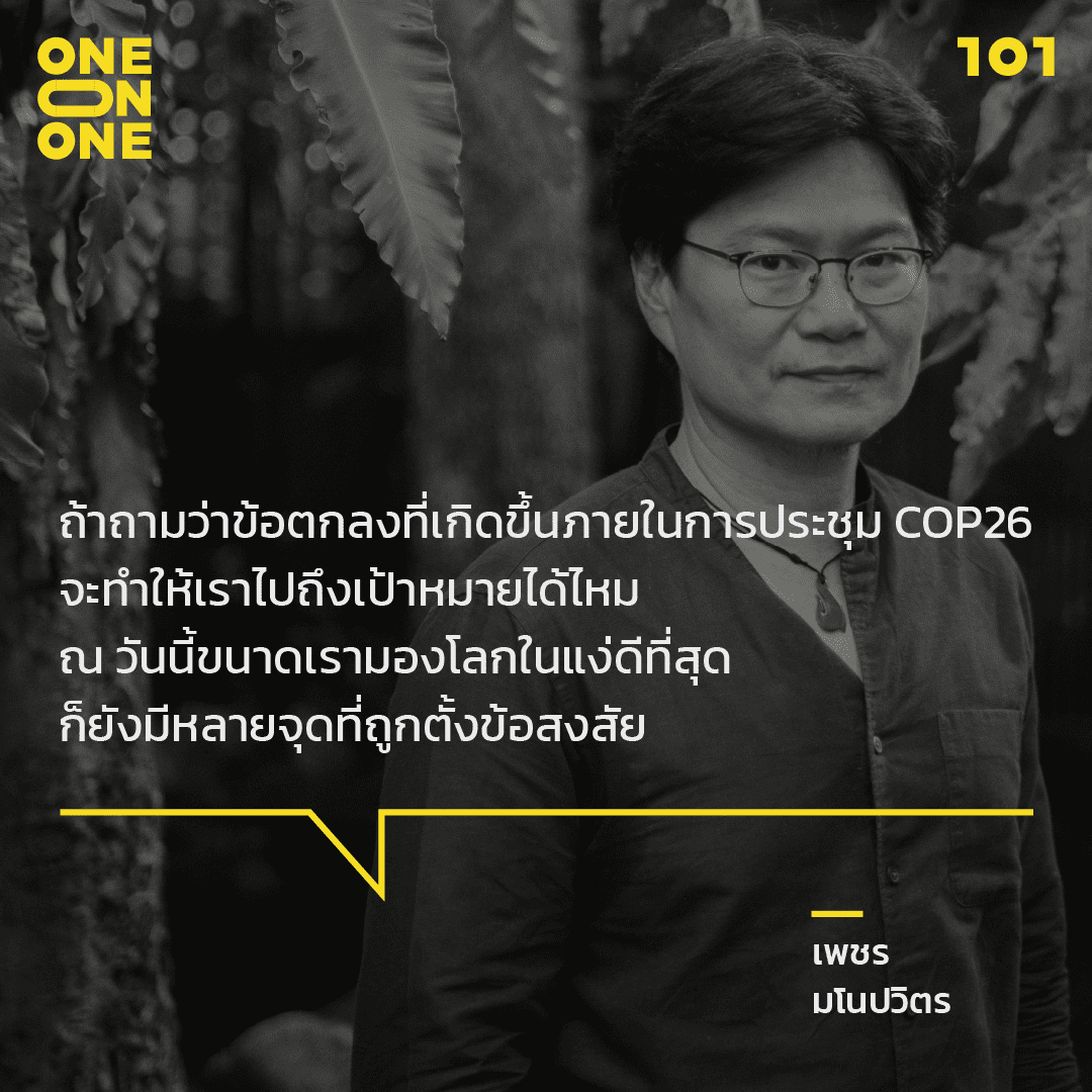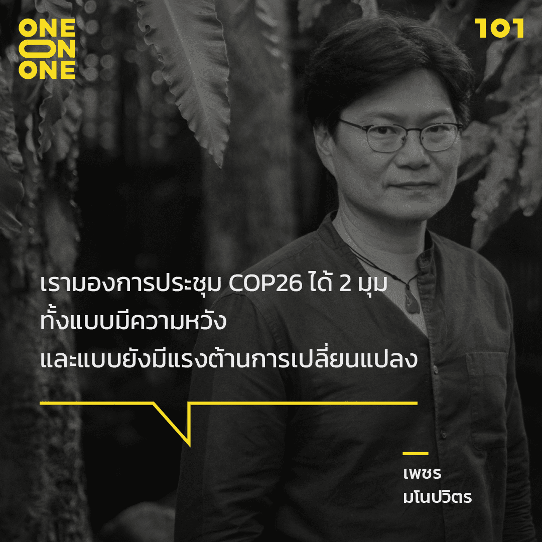 101 ชวน ดร.เพชร มโนปวิตร นักวิทยาศาสตร์ด้านการอนุรักษ์ เลขาธิการมูลนิธิโลกสีเขียว และผู้ร่วมก่อตั้ง ReReef สนทนาถึงปัญหาการเปลี่ยนแปลงสภาพภูมิอากาศโลกที่ใกล้เดินถึงจุดที่ไม่อาจแก้ไขได้ พร้อมเจาะลึกผลการประชุม COP26 ว่าเพียงพอหรือล้มเหลวที่จะพามนุษยชาติให้รอดพ้นจากปัญหานี้