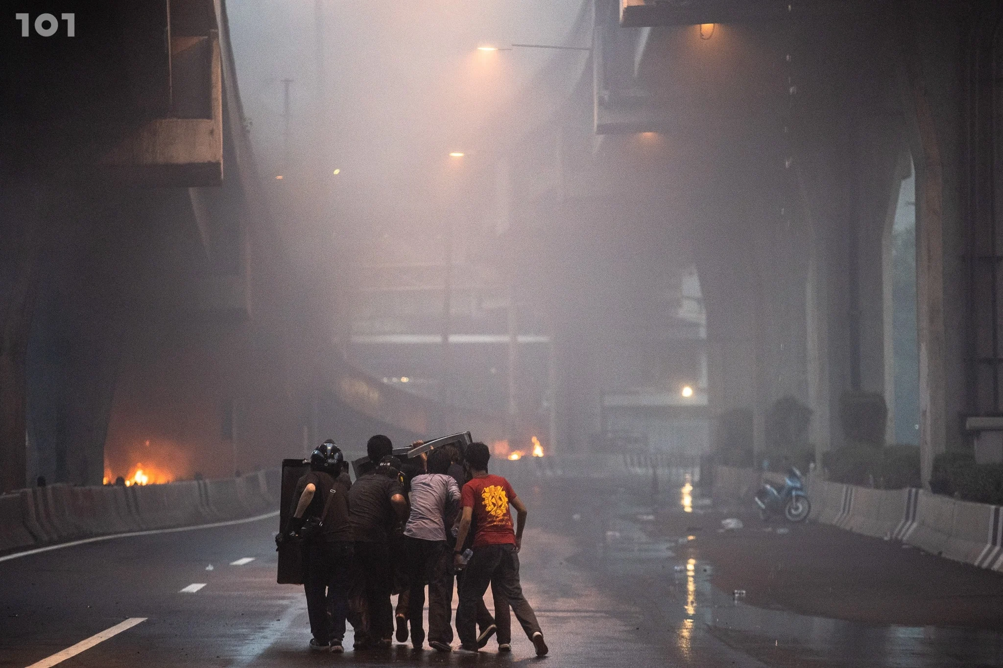คำถามมีมากมายไม่จบไม่สิ้น และเป็นเรื่องชอบธรรมที่เราจะถาม แต่ก็เป็นเรื่องที่เราไม่ควรจะลืมเช่นกันว่าท่ามกลางข้อถกเถียงที่ช่างภาพดูจะ ‘ตกเป็นเป้า’ ของการวิพากษ์วิจารณ์นี้ ในสนามของการทำงาน พวกเขาก็เป็นเป้าของเจ้าหน้าที่รัฐเช่นกัน ในบริบทของการทำข่าวการชุมนุมในเมืองไทย ปลอกแขนสื่อมวลชนไม่มีความศักดิ์สิทธิ์ ส่วน ‘สื่ออิสระ’ และผู้ชุมนุมที่ต่างก็ถ่ายภาพถ่ายคลิปด้วยมือถือนั้นล้วนแต่ไม่มีปลอกแขนและยิ่งไม่มีอะไรคุ้มครอง ในสถานการณ์ที่รัฐไม่ปฏิบัติตามกฎเกณฑ์ควบคุมการชุมนุมตามระบบสากล พวกเขากำลังเสี่ยงเพื่อส่งภาพออกมา– to be sent further—ให้ถึงเรา (ที่นั่งปลอดภัยอยู่ที่บ้าน)