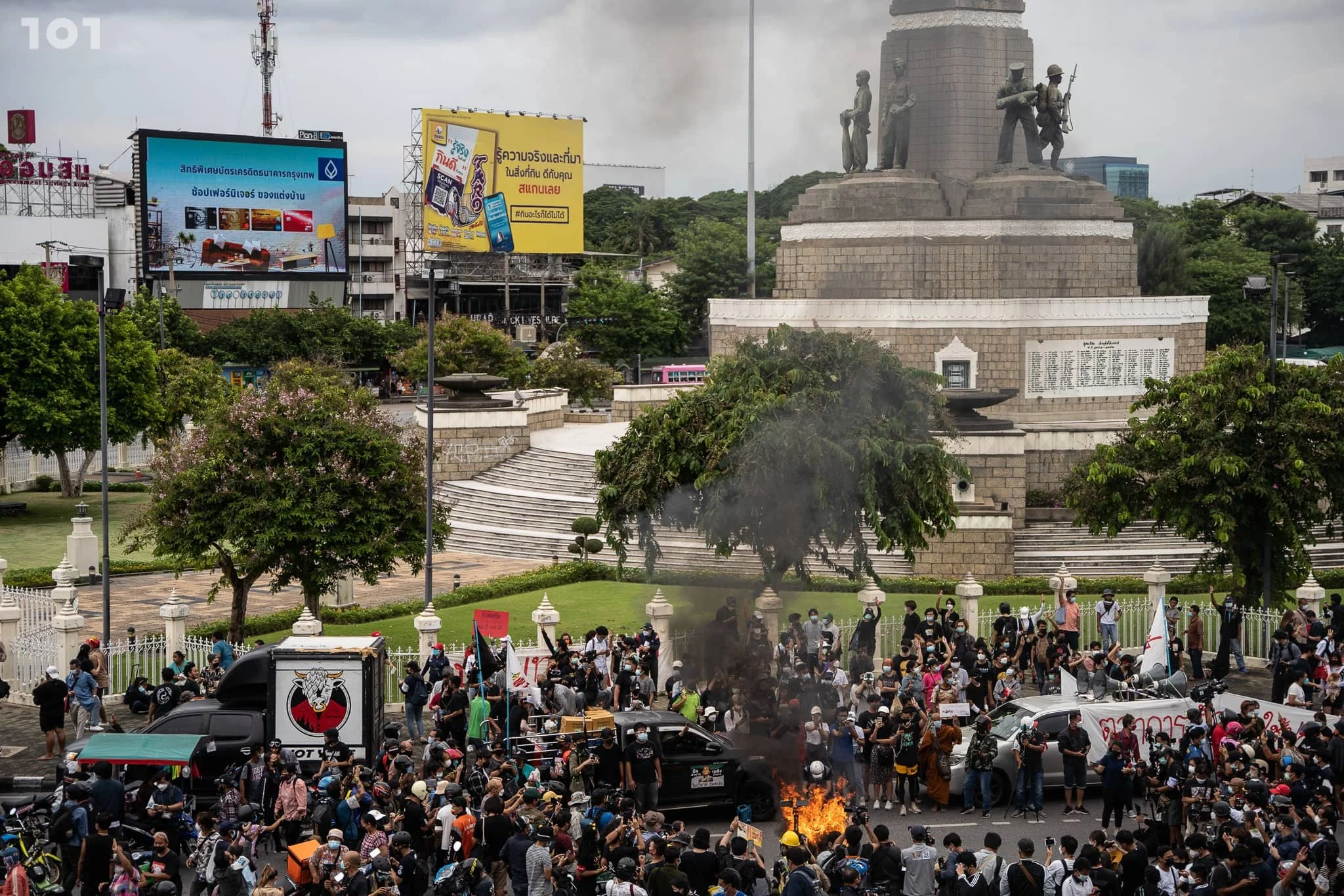 ภาพความรุนแรง (ที่บางภาพ ‘สวยมาก’) นั้นแสดงอะไรกันแน่? เราสามารถมองได้หรือไม่ว่าความรุนแรงที่เห็นในภาพเหล่านี้มีความสัมพันธ์อย่างแนบแน่นกับข้อเรียกร้องของผู้ชุมนุม (ไม่ว่าจะใช่สายบวกหรือไม่ก็ตาม) เพราะความรุนแรงที่ปรากฏในภาพ คือหลักฐานที่แสดงให้เห็นว่าข้อเสนอของผู้ชุมนุมแหลมคมเพียงใด ในสายตาของรัฐ ข้อเรียกร้องเหล่านี้คุกคามต่อความมั่นคง ดังนั้น เมื่อข้อเสนอ ‘แรง’ รัฐจึงต้อง ‘ปราบแรง’ ภาพความรุนแรงของการปราบปรามจนทุกสิ่ง “จมหายไปในดงกระสุนยาง” ที่สะพัดอยู่ในโลกออนไลน์นั่นเองที่บอกกับเราว่า กระสุนยางที่ระดมยิงออกมานั้น อะไรคือสิ่งที่มันต้องการกำราบ —ข้อเรียกร้องข้อที่ยากที่สุด—การปฏิรูปสถาบันกษัตริย์