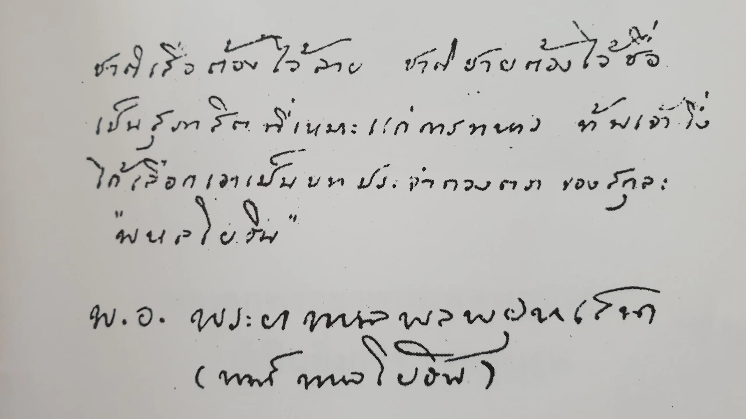 “ชาติเสือต้องไว้ลาย ชาติชายต้องไว้ชื่อ” เป็นสุภาษิตที่พระยาพหลพลพยุหเสนา (พจน์) “เลือกเอามาเปนบทประจำดวงตราสกุลพหลโยธิน”